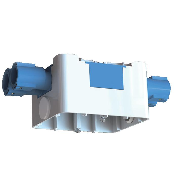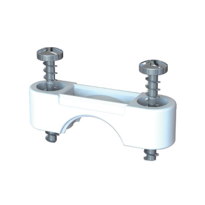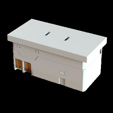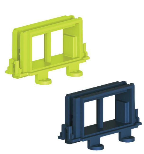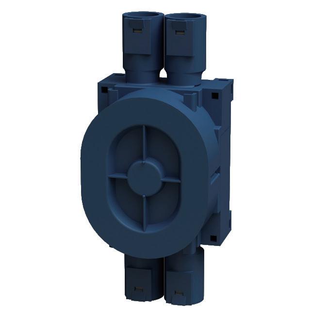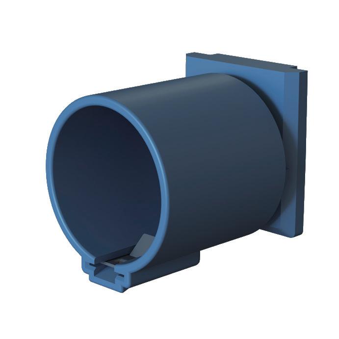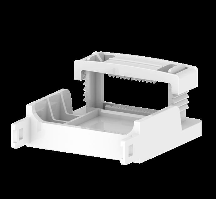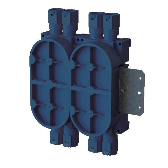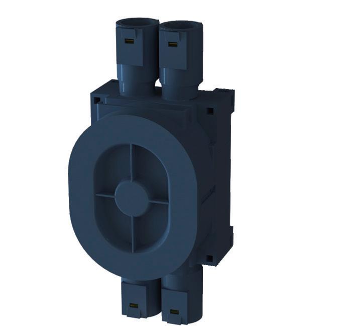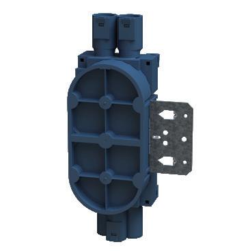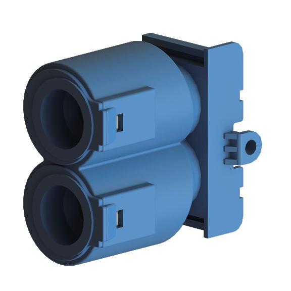 Inlet attachment for two Ø16 conduits. It features locking springs and sealing caps.