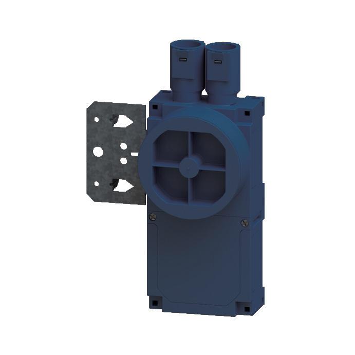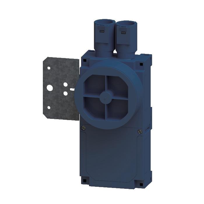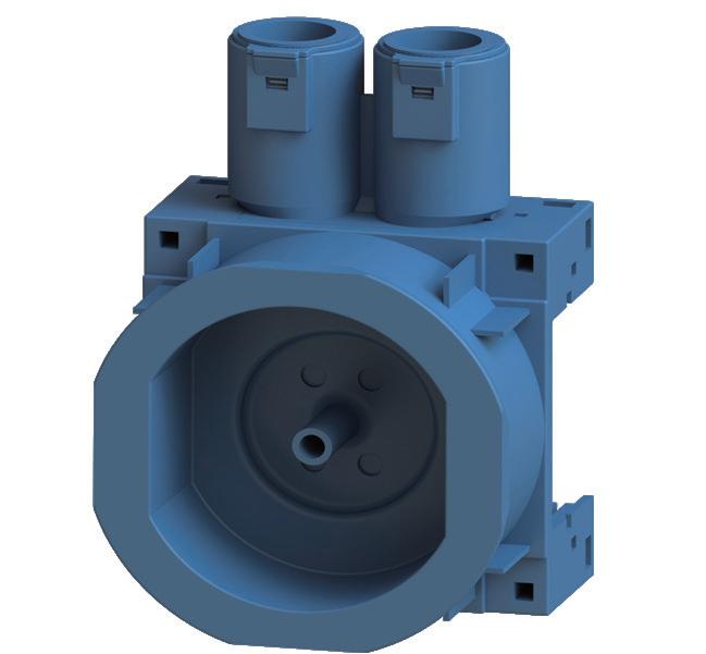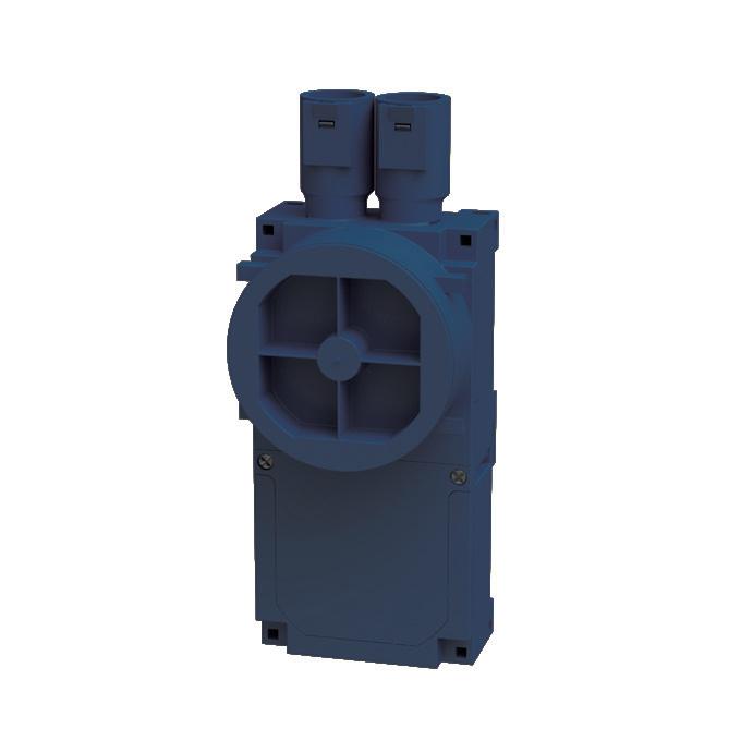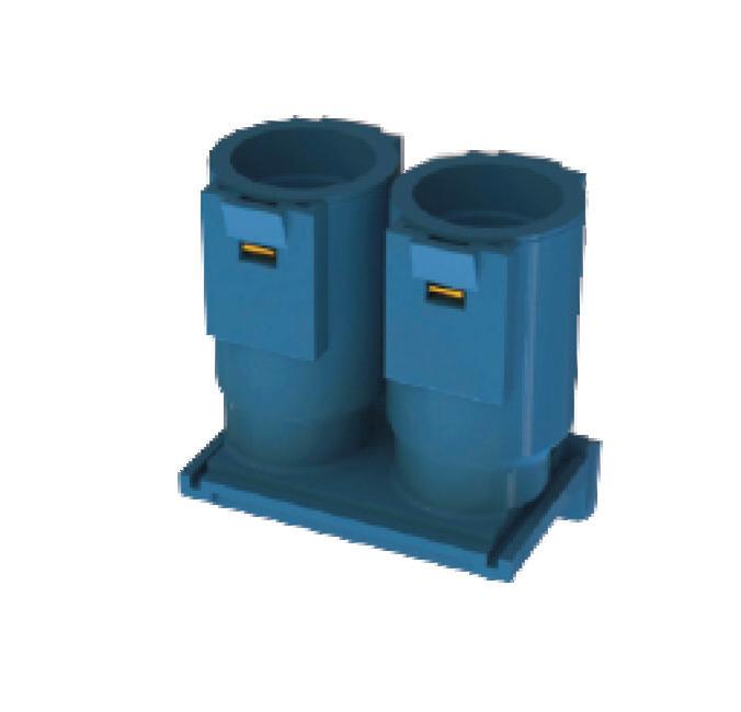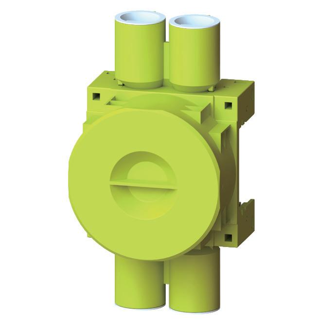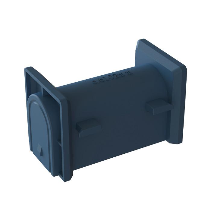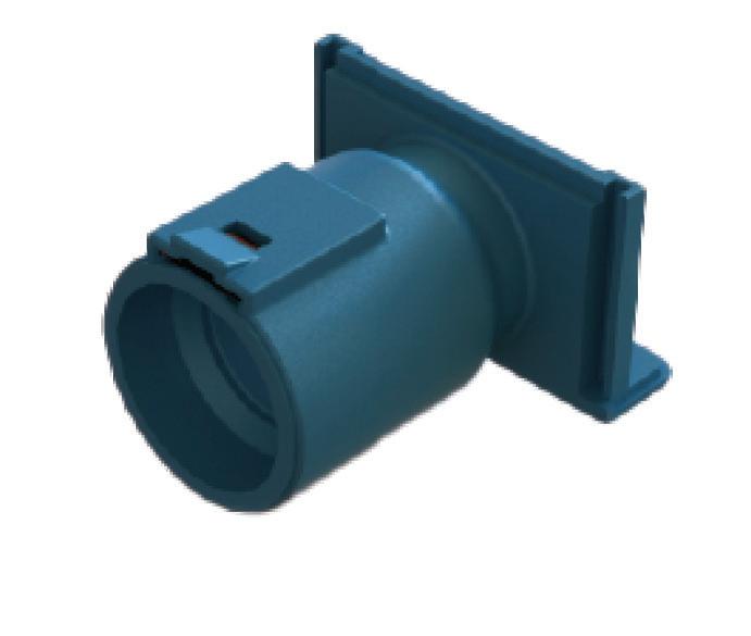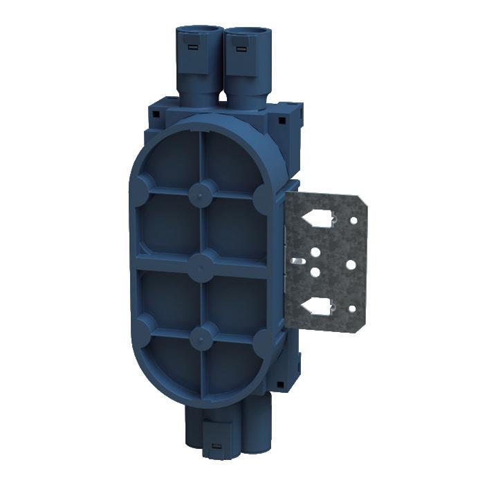 Inlet attachment for two Ø16 conduits. It features locking springs and sealing caps.