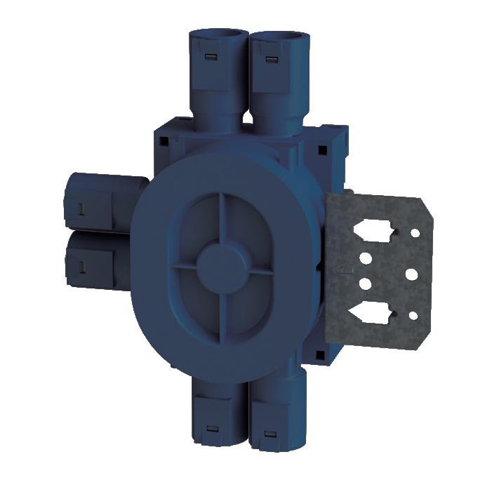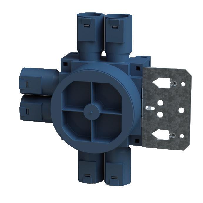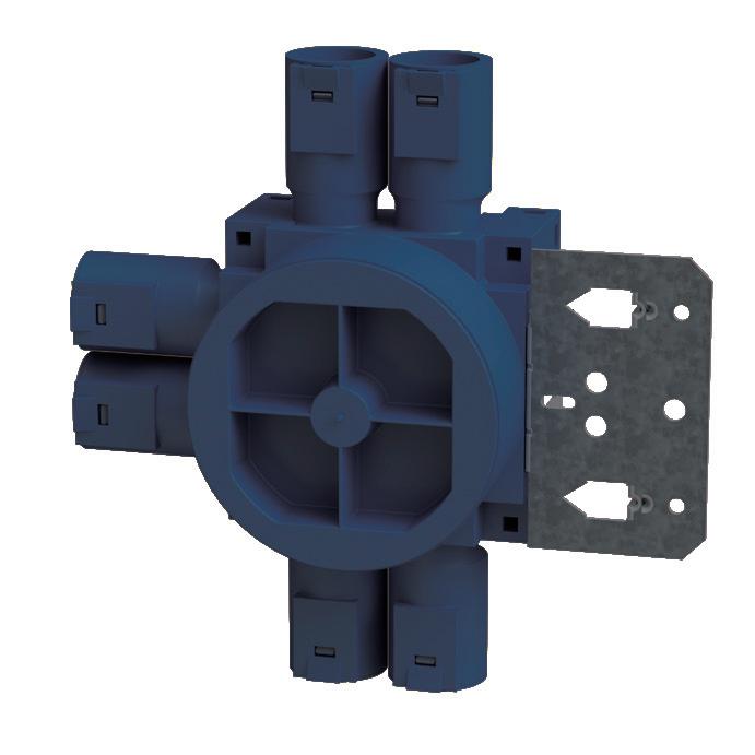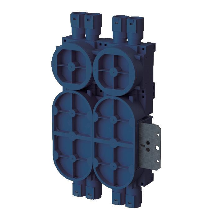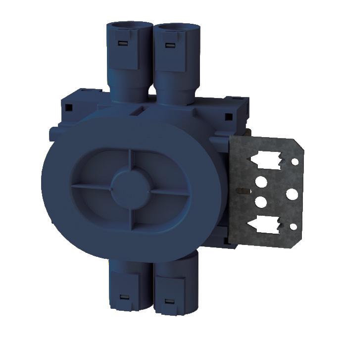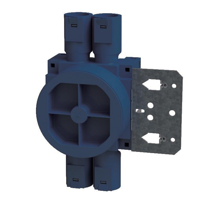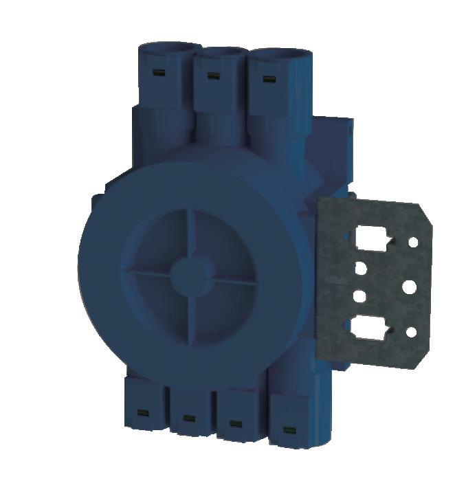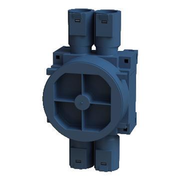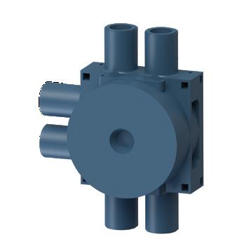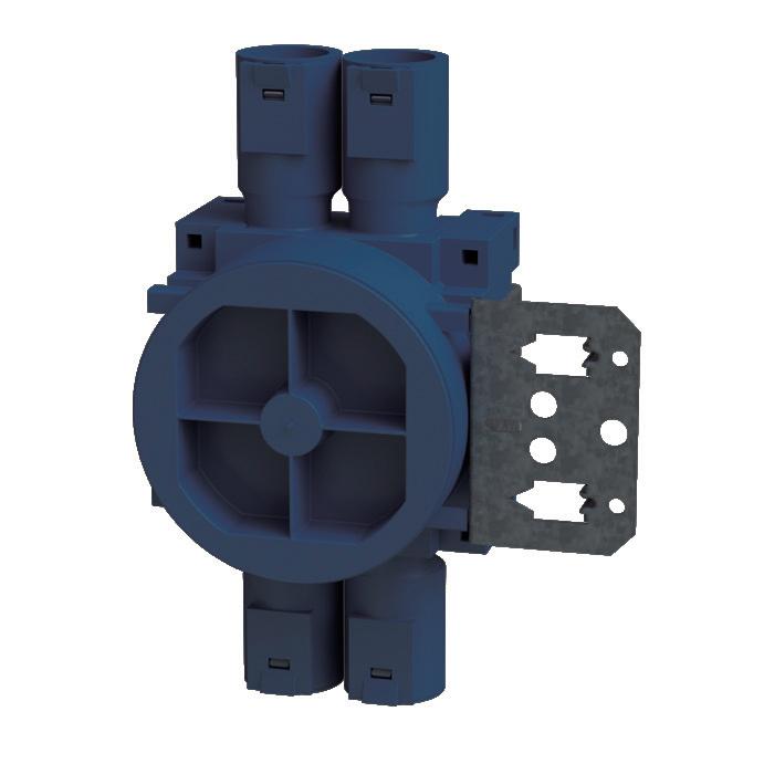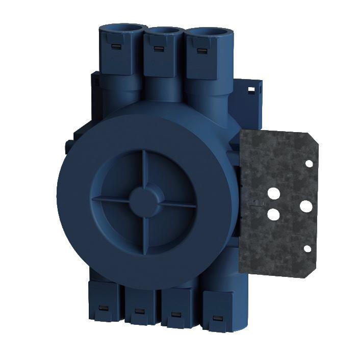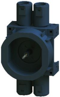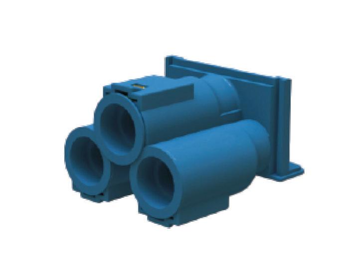 Inlet attachment for three Ø16 conduits. It features locking springs and sealing caps.