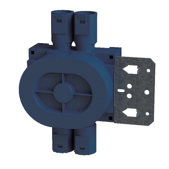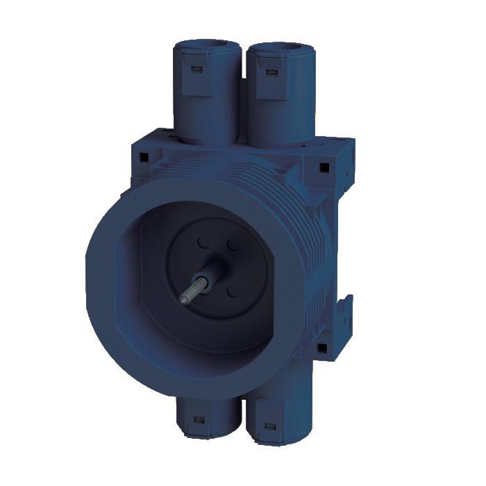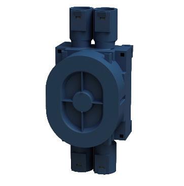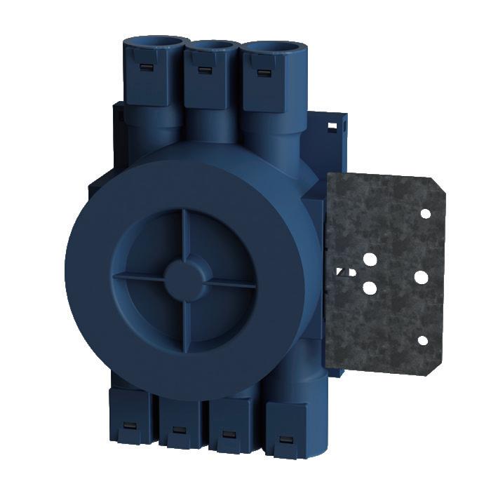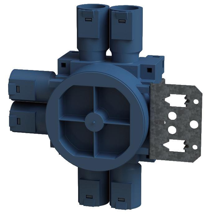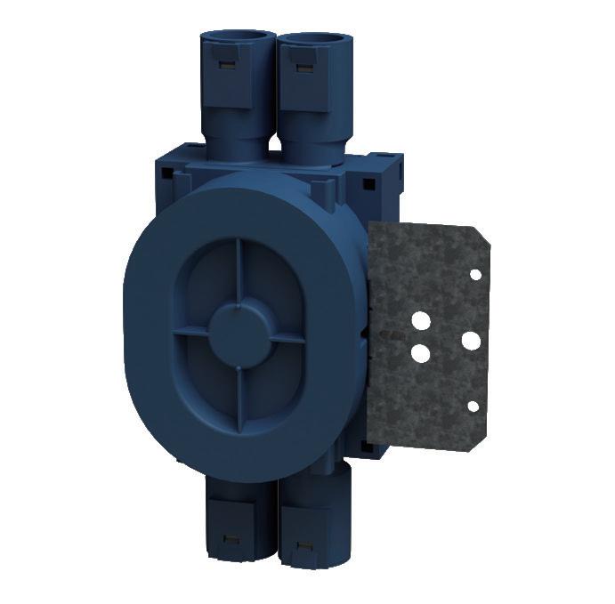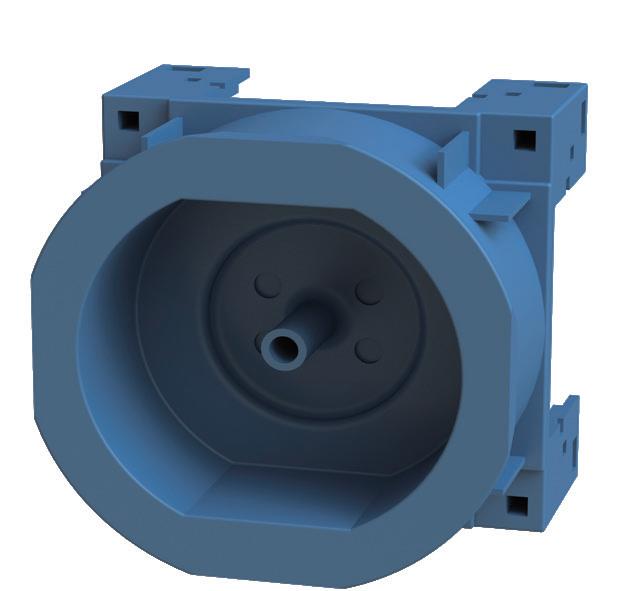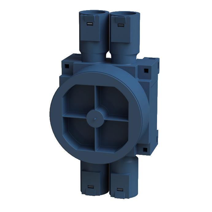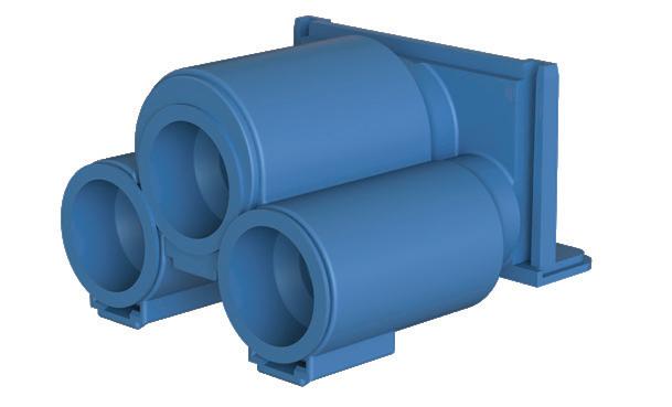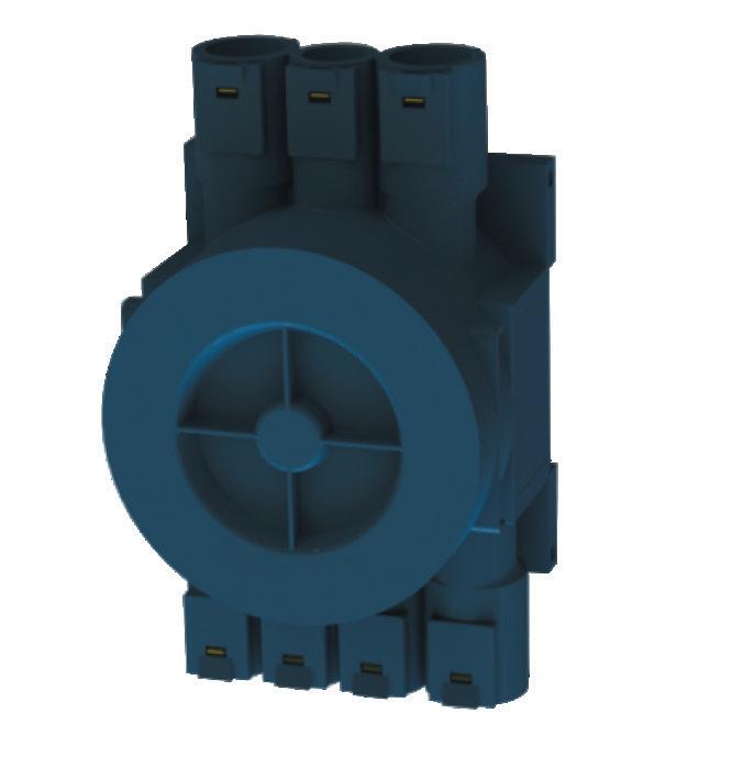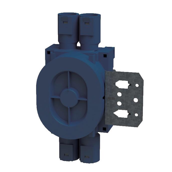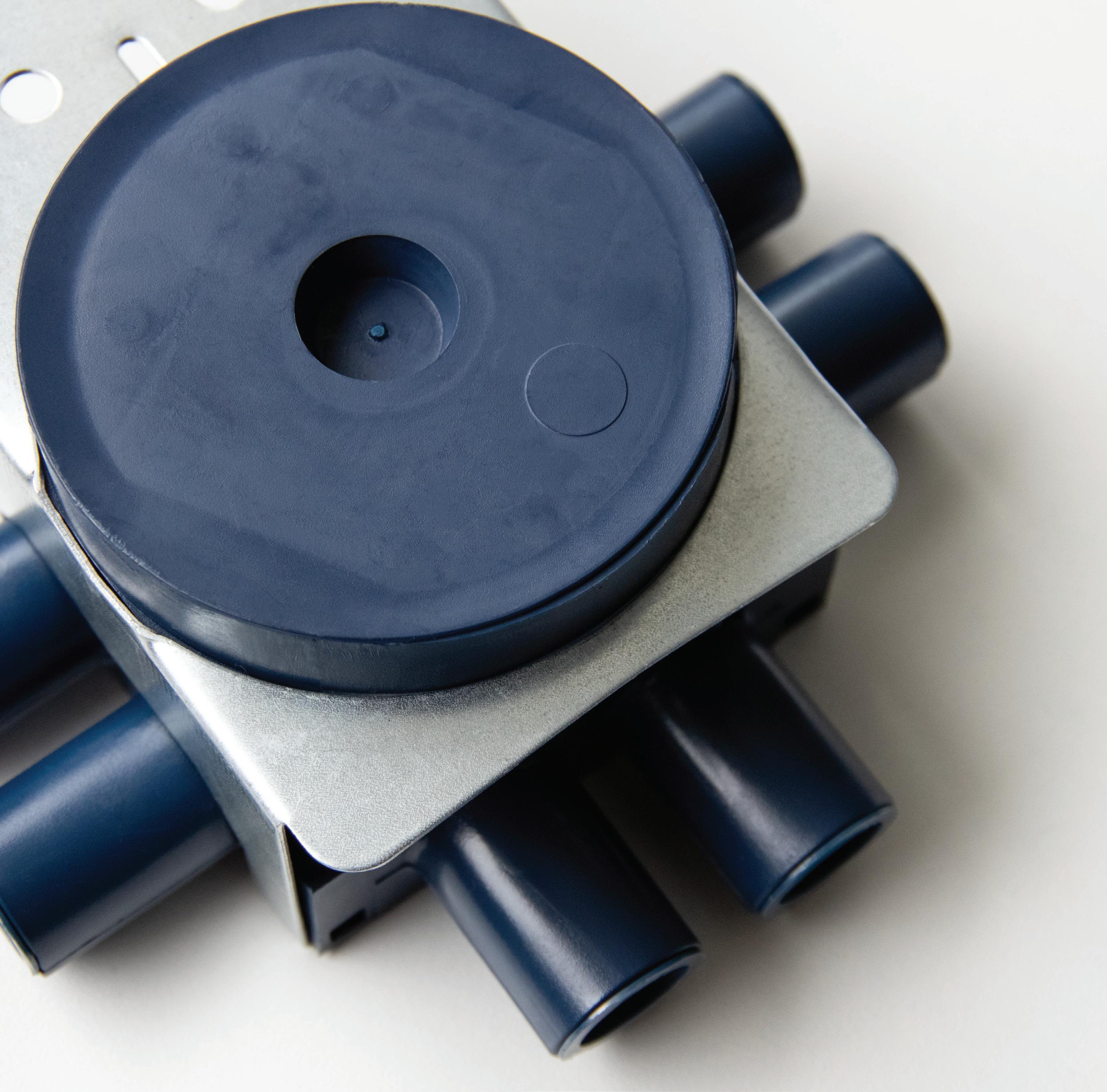 Inlet attachment for three Ø16 conduits. It features locking springs and sealing caps.