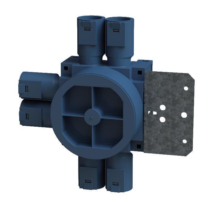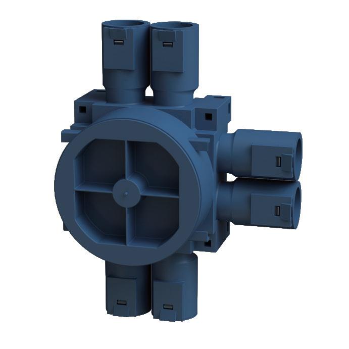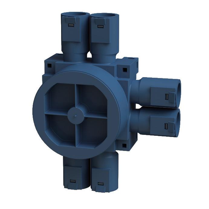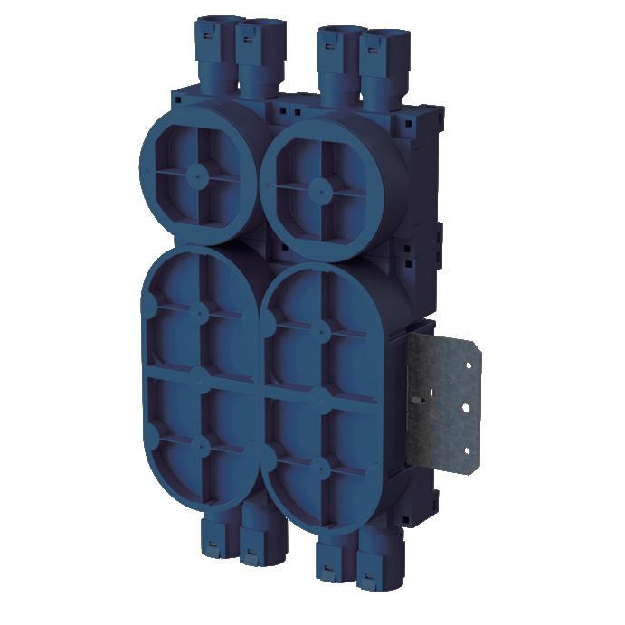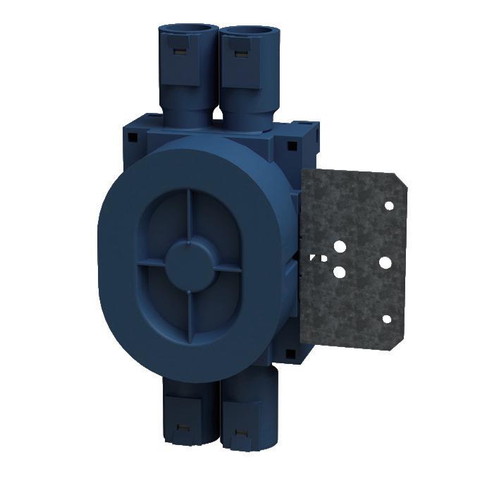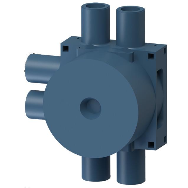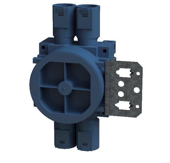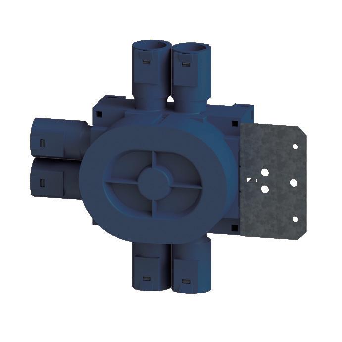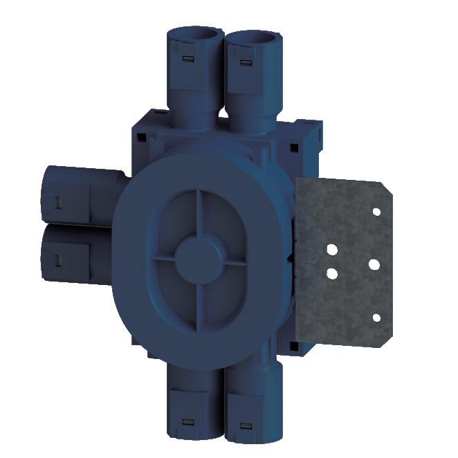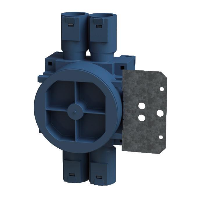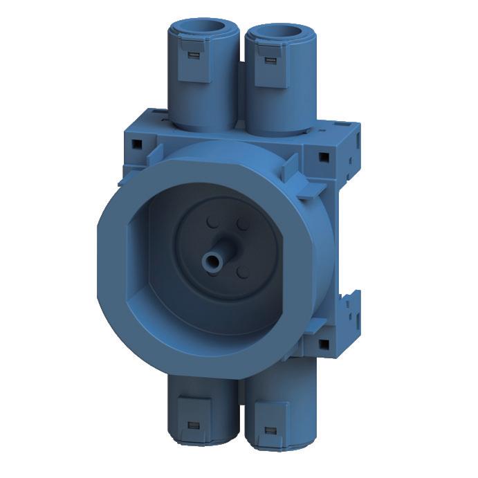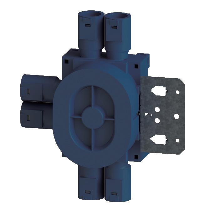 Inlet attachment for three Ø16 conduits. It features locking springs and sealing caps.