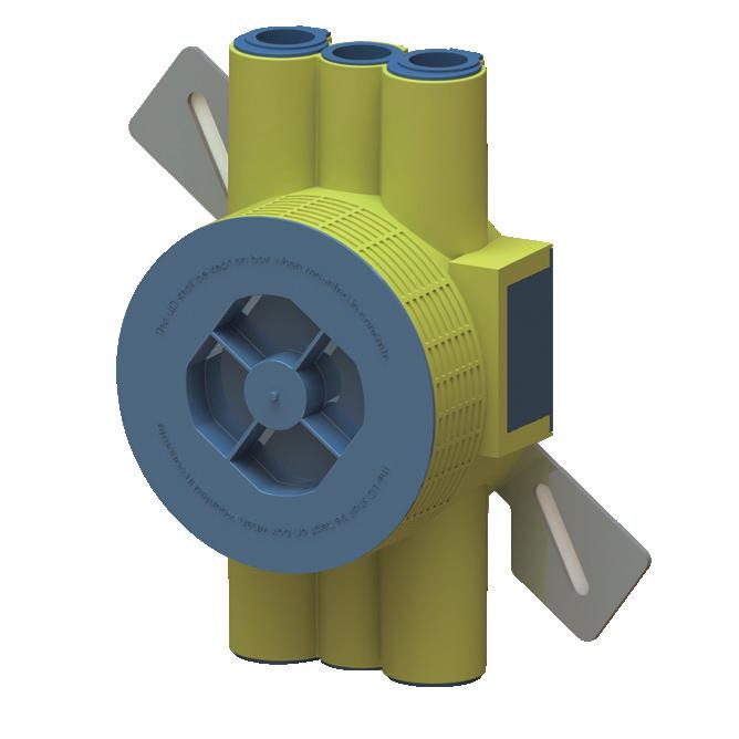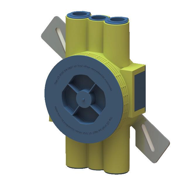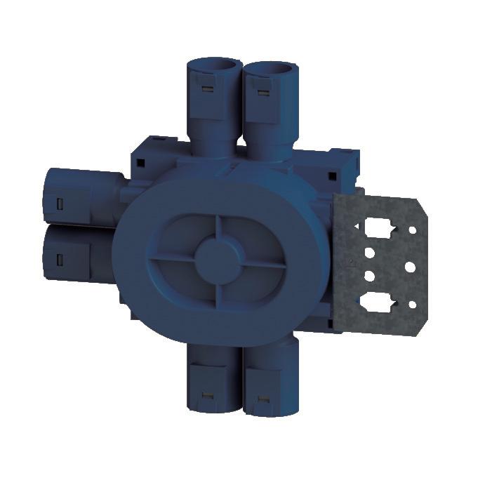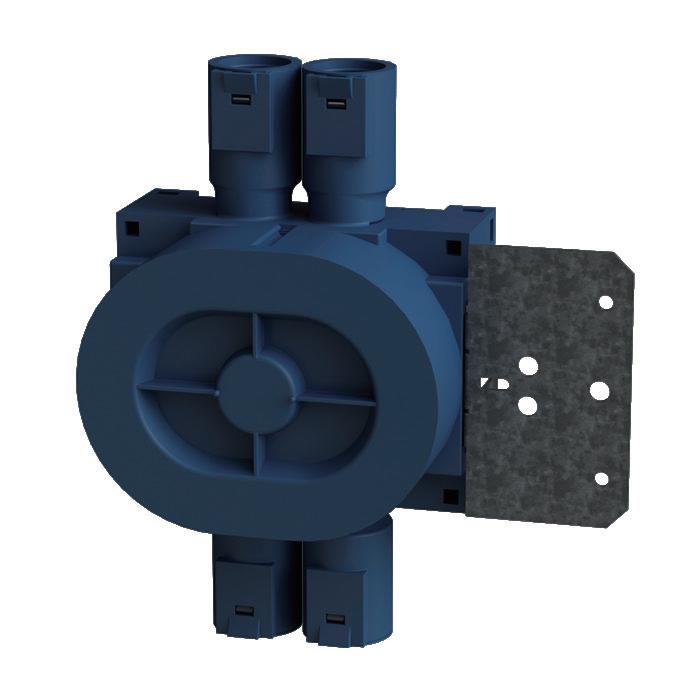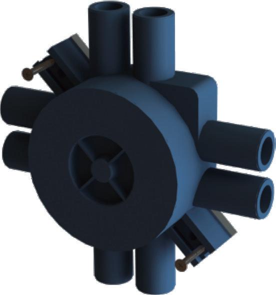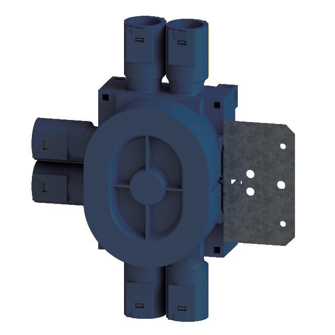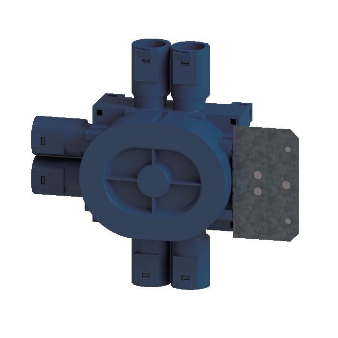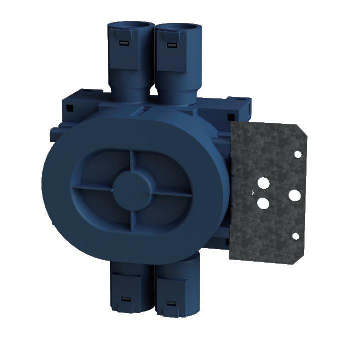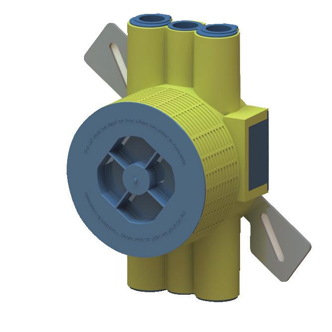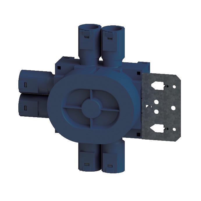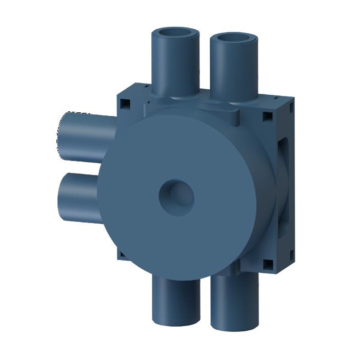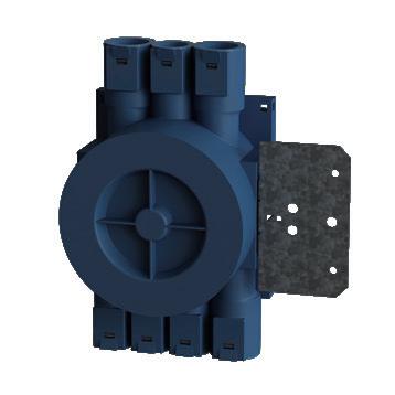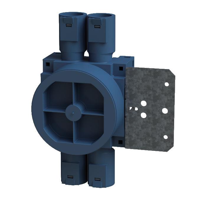 Inlet attachment for three Ø16 conduits. It features locking springs and sealing caps.