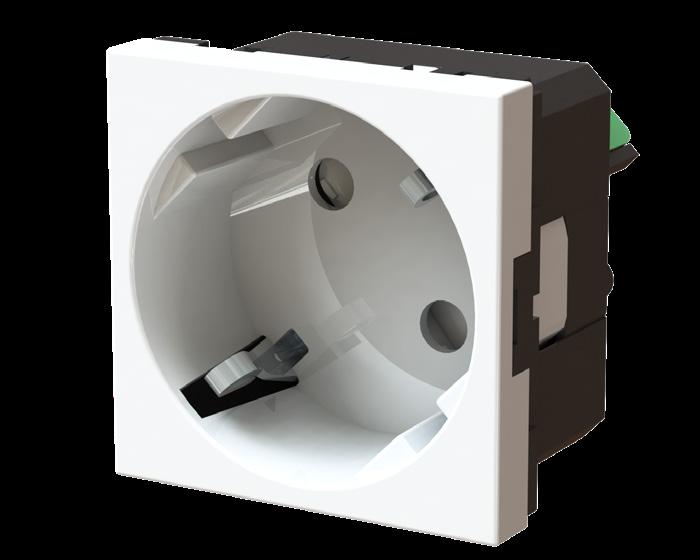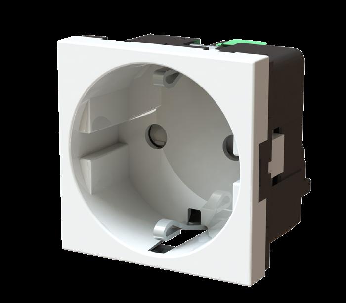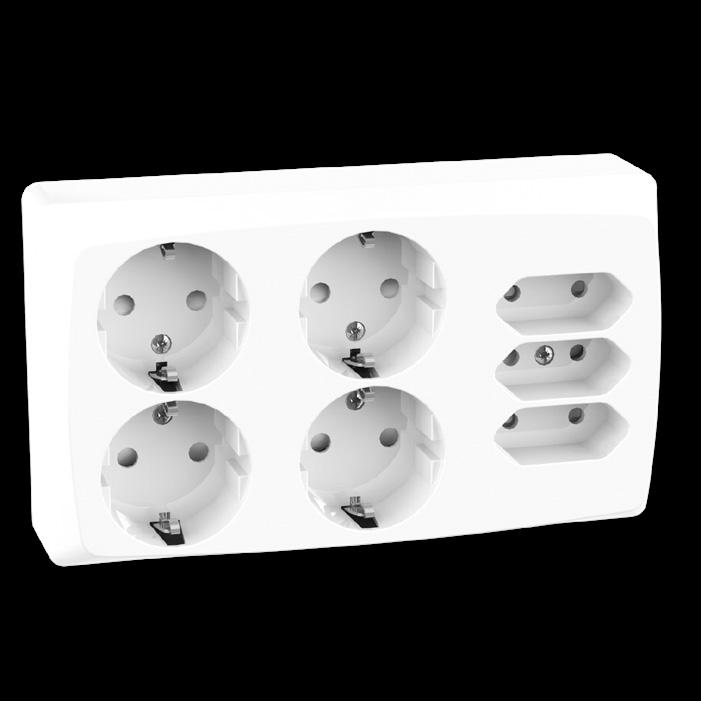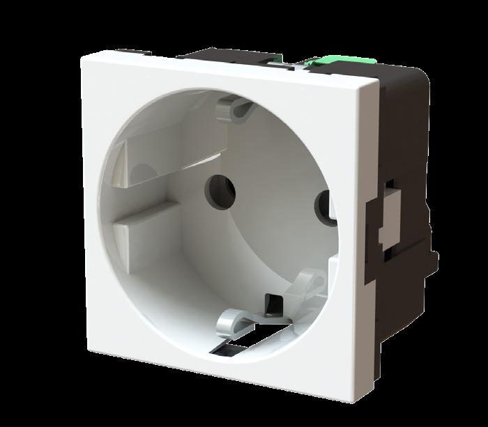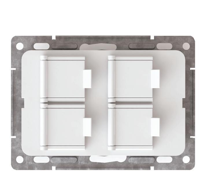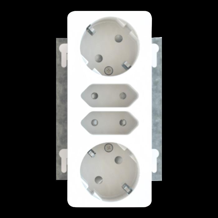 Socket frame designed to accommodate two 3-way Schuko sockets and two standard socket or switch units. Ensures a secure, precise fit and a neat finish, combining functionality and durability for versatile electrical installations.