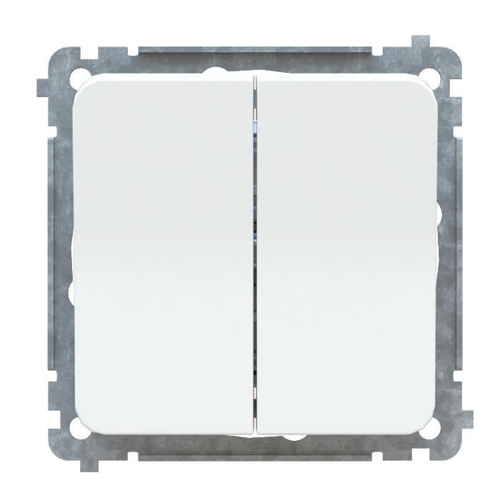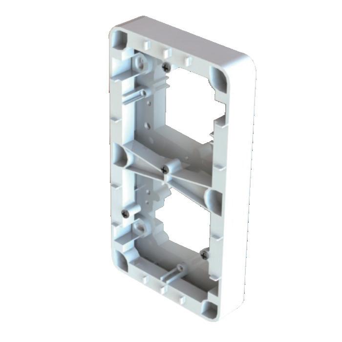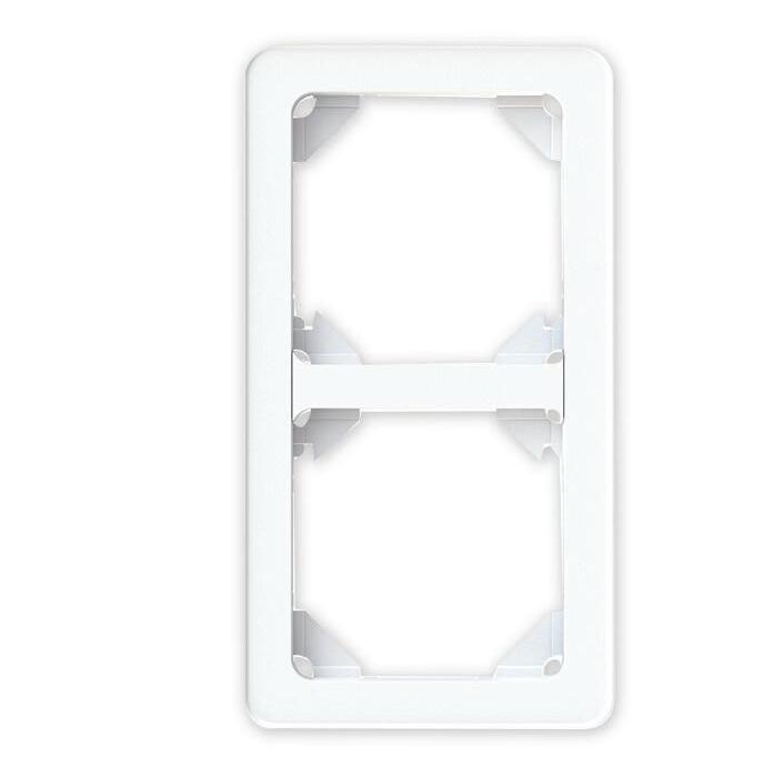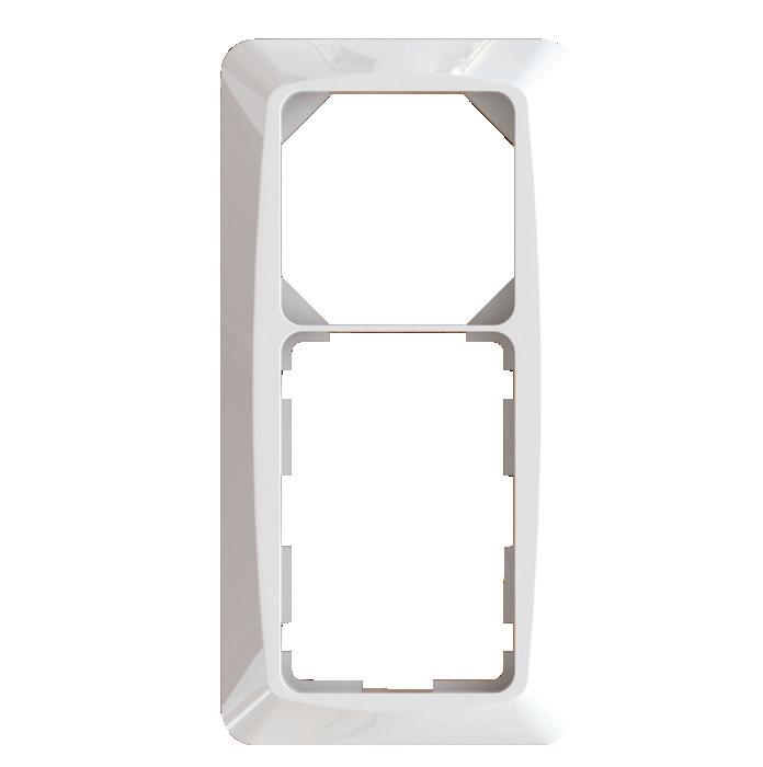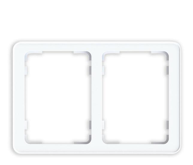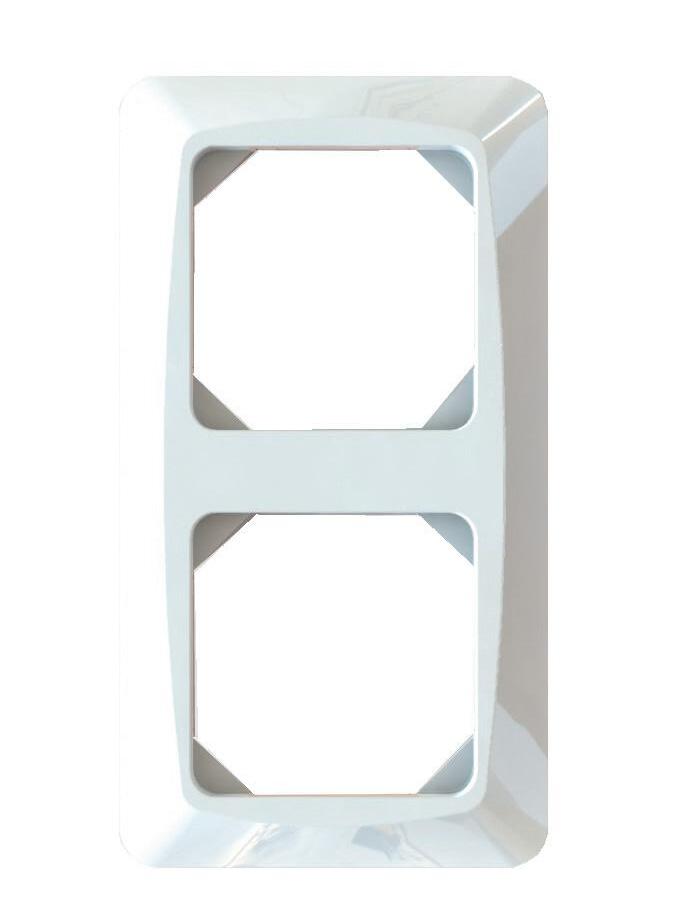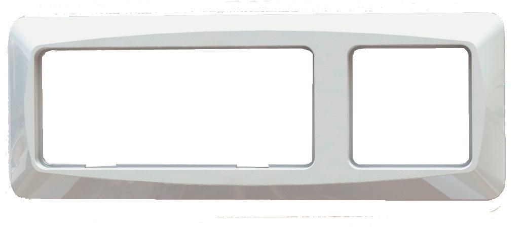 2-way combination frame fitting one standard sized socket/ switch and one RS16-sized. Designed for recessed installation or use with wall casings of matching size.