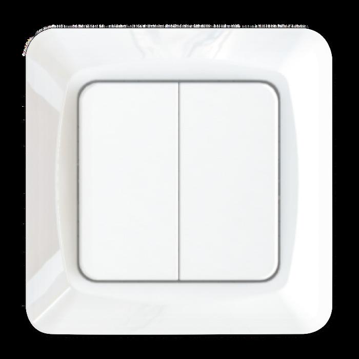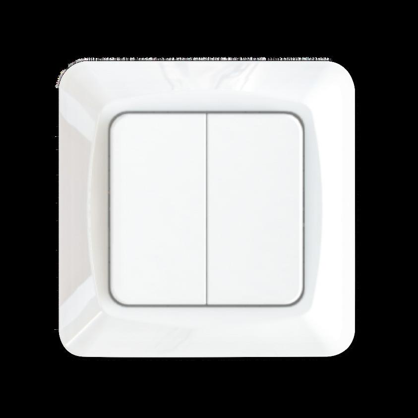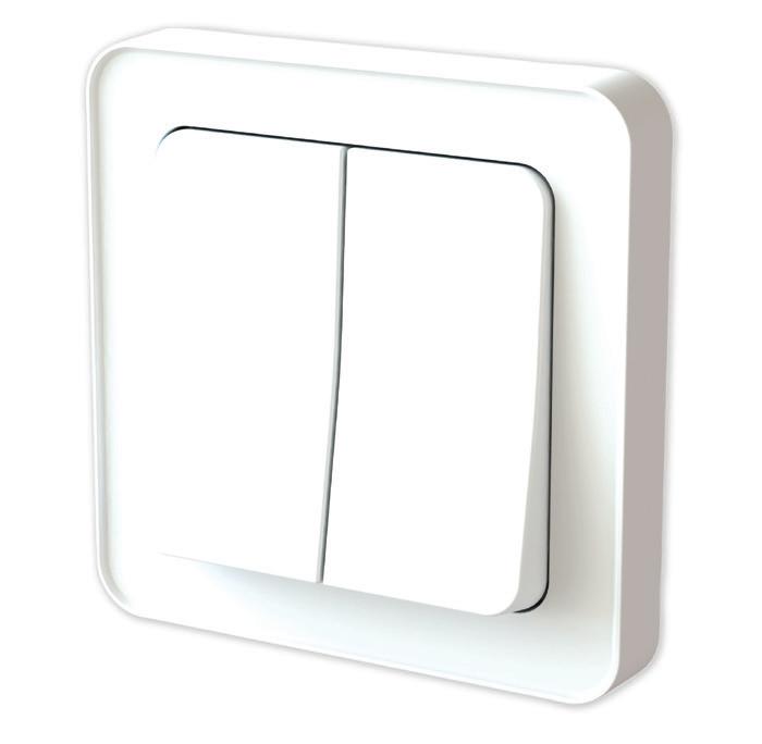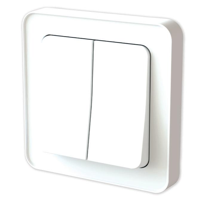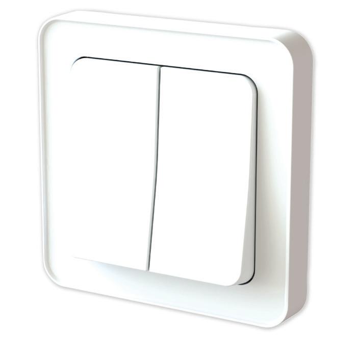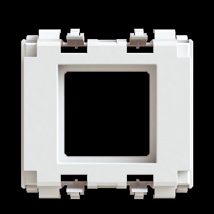 2-way combination frame fitting one standard sized socket/ switch and one RS16-sized. Designed for recessed installation or use with wall casings of matching size.