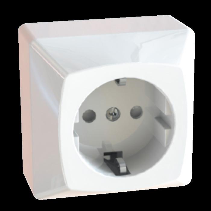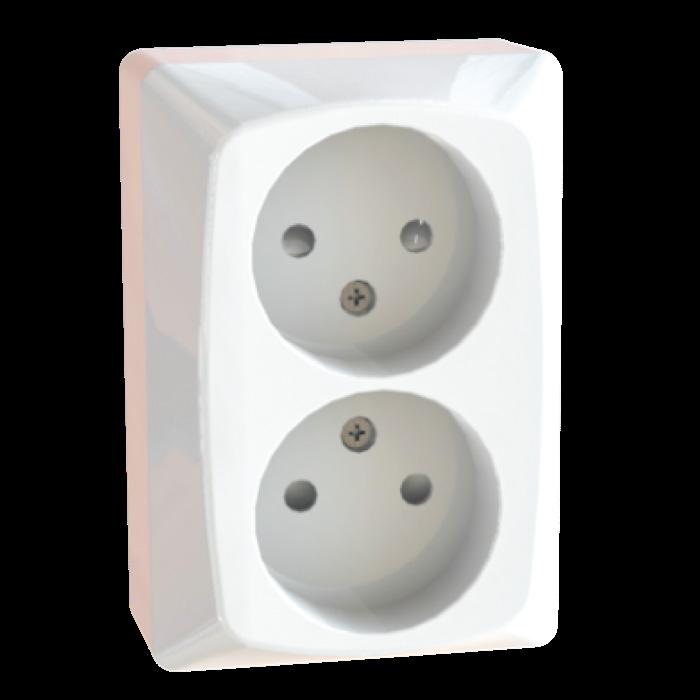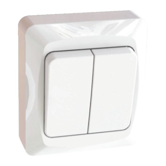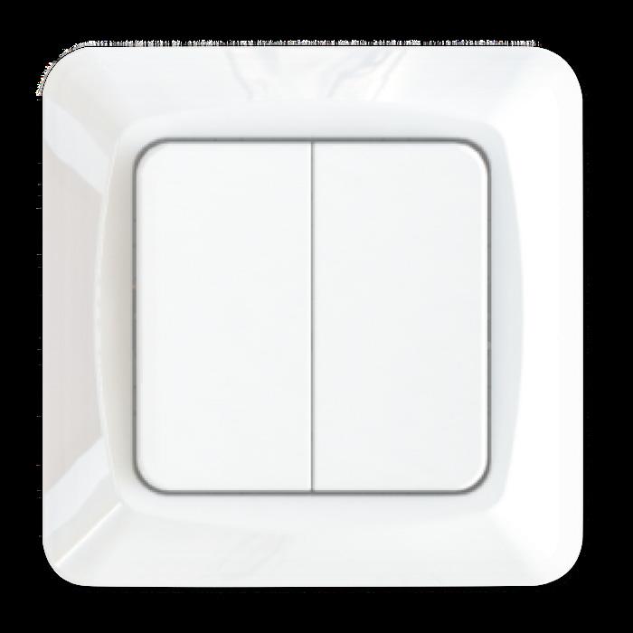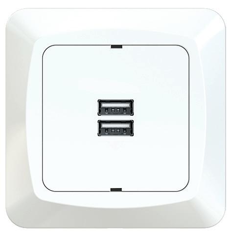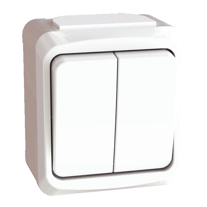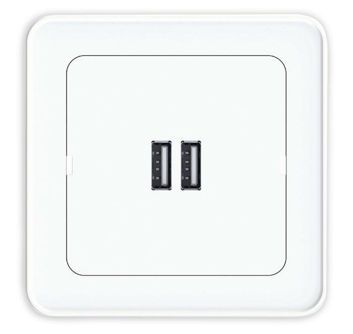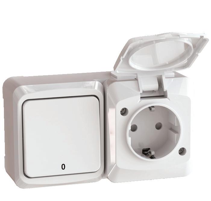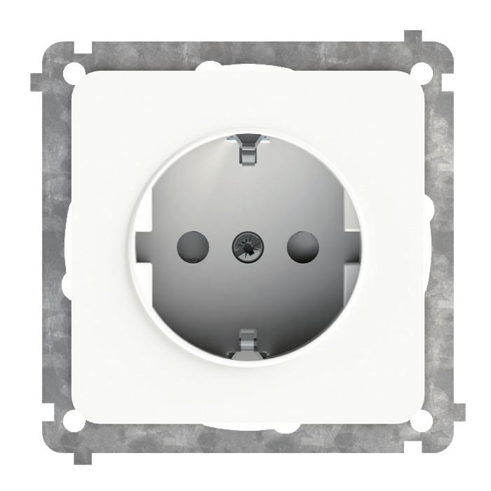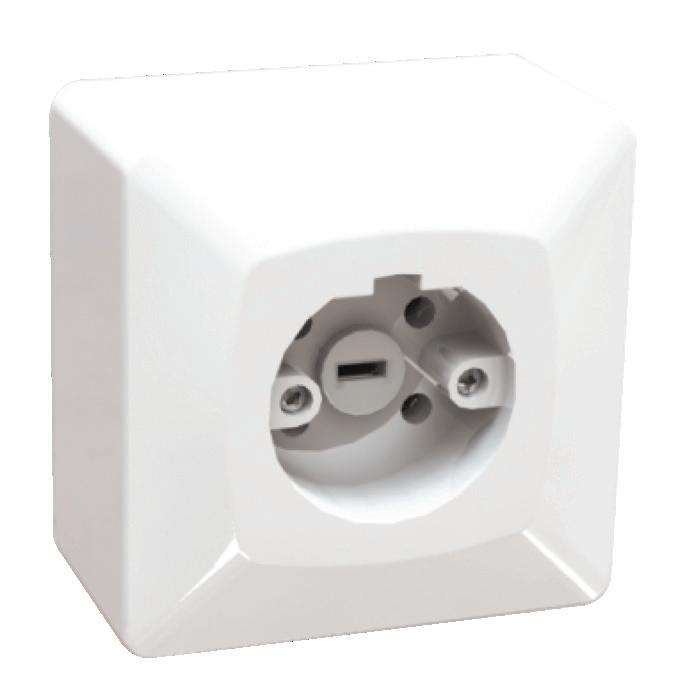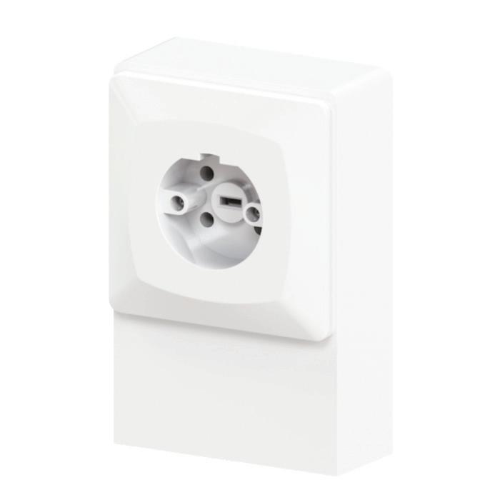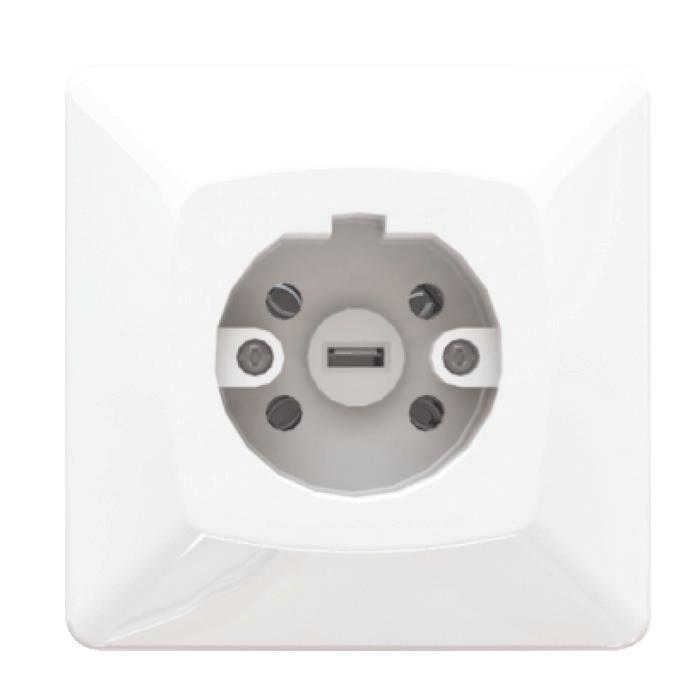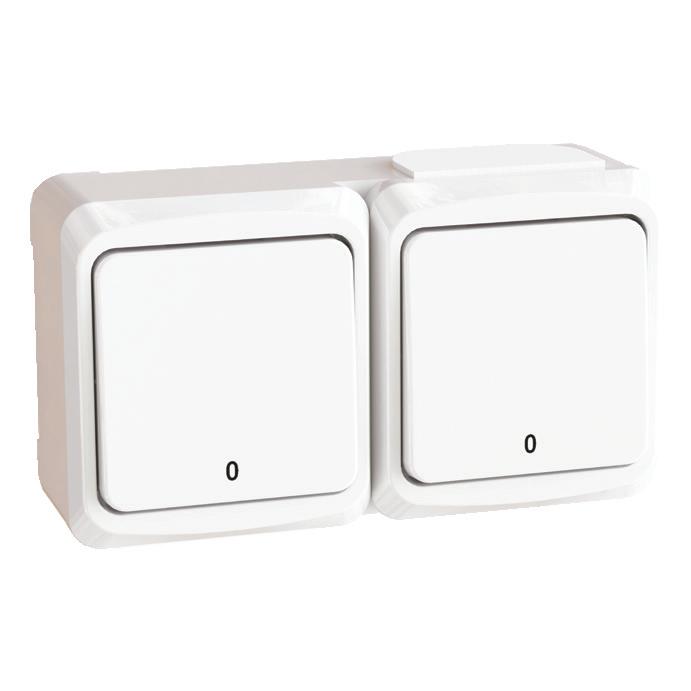 1-way combination frame fitting standard and low profile double Schuko sockets. Suitable for recessed installation or with matching wall casings.