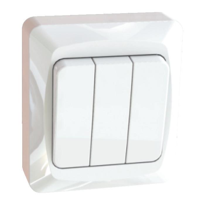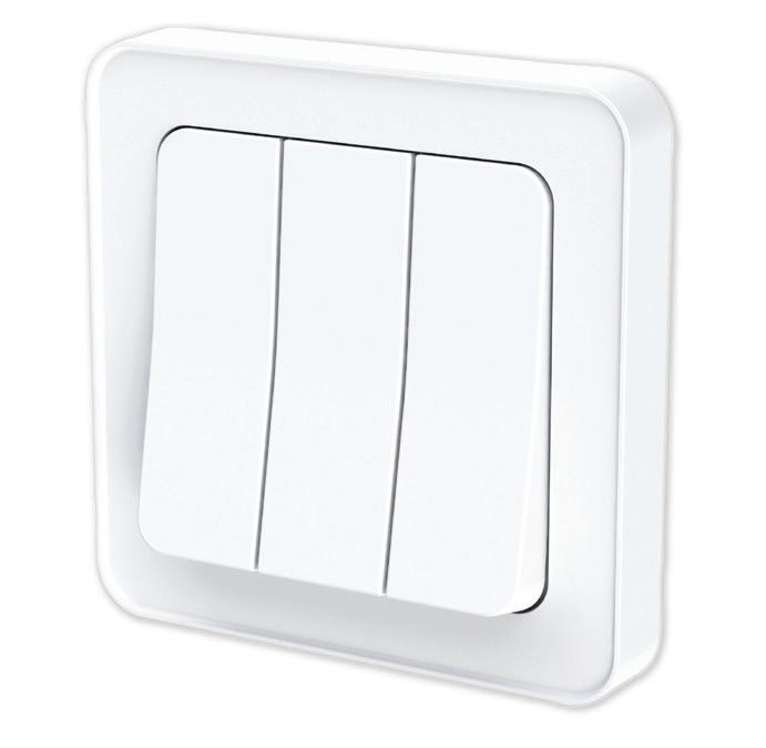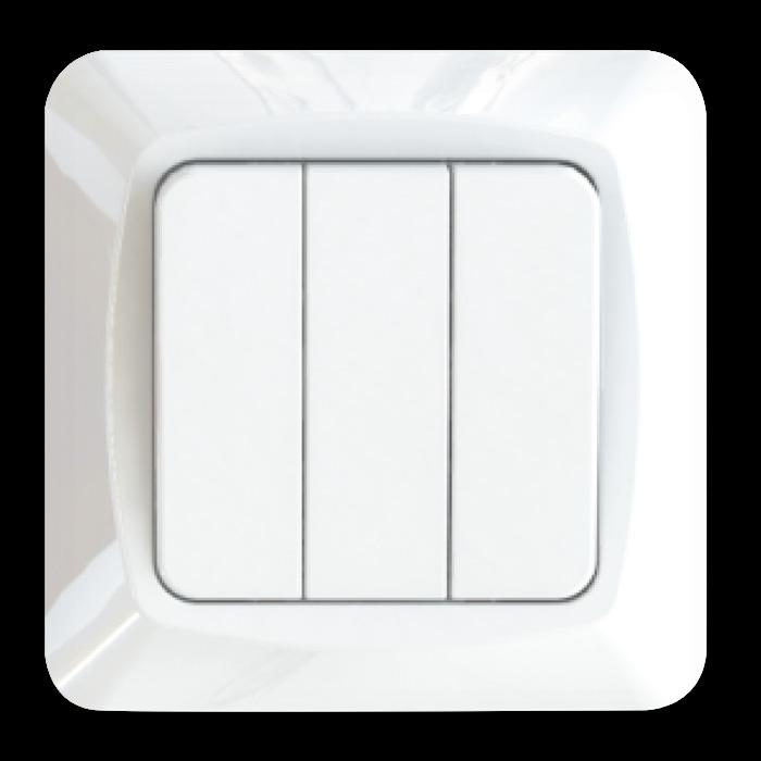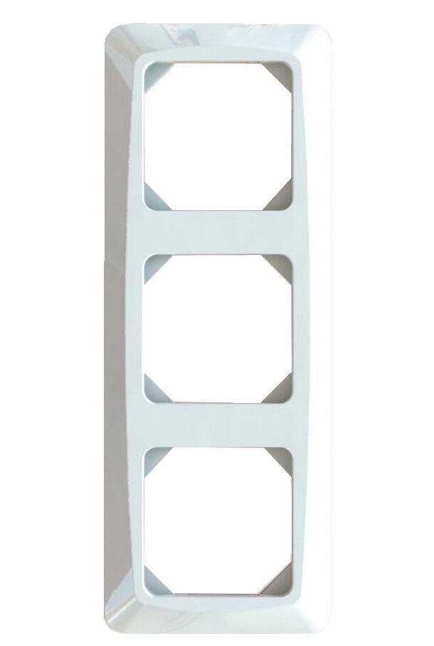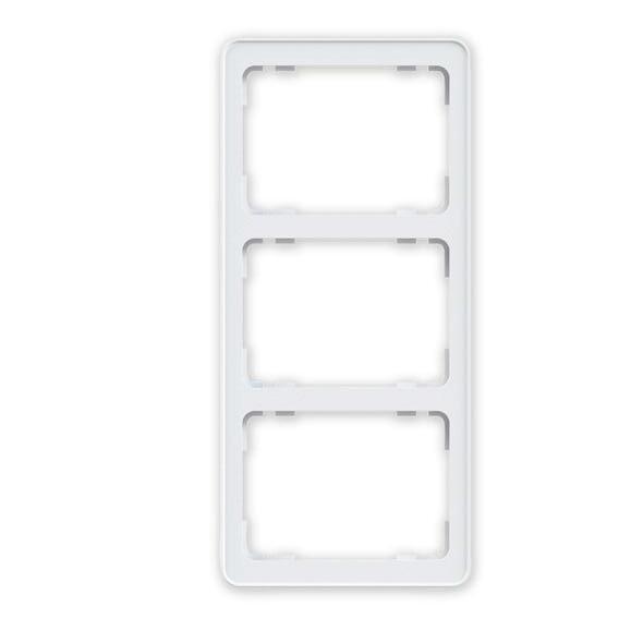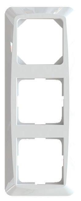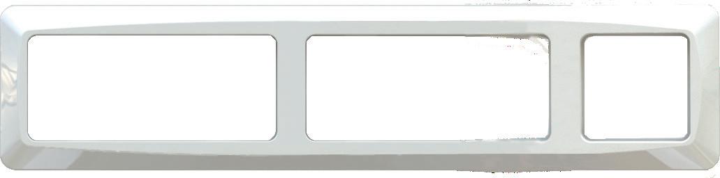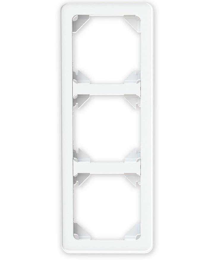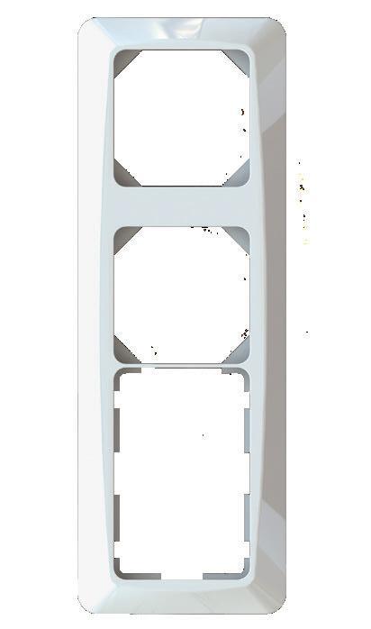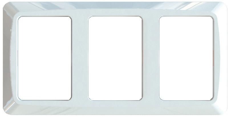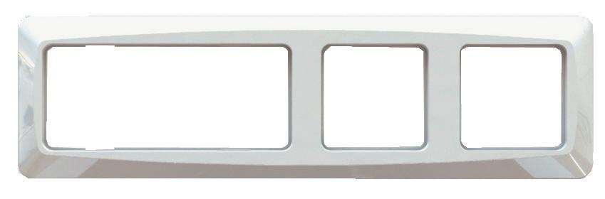 3-way combination frame fitting two standard-sized sockets/ switches and one RS16-sized. Designed for recessed installation or use with wall casings of matching size.