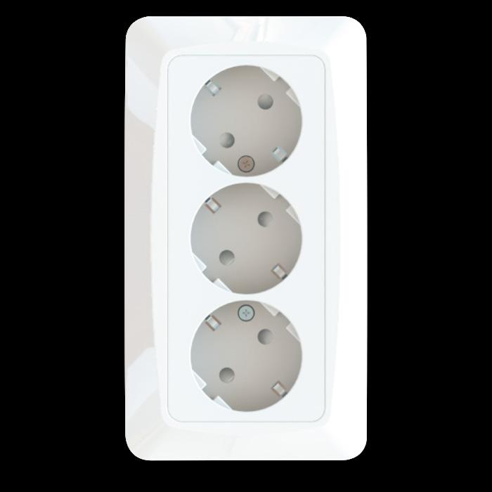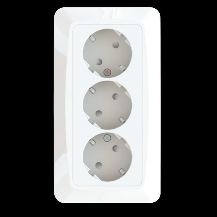 Socket frame designed to fit a 3-way Schuko socket. Provides a secure and precise fit, ensuring stability and protection. Made from durable materials for long-lasting use, offering a clean and professional finish for multi-socket installations.