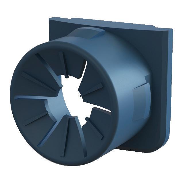 Inlet attachments for wall boxes feature locking springs that securely hold conduits in place. Each conduit entry point is equipped with a removable cap, protecting the interior from debris and dust to ensure a safe installation. These inlets accommodate different conduit diameters, available in 16mm, 20mm, and 25mm sizes.