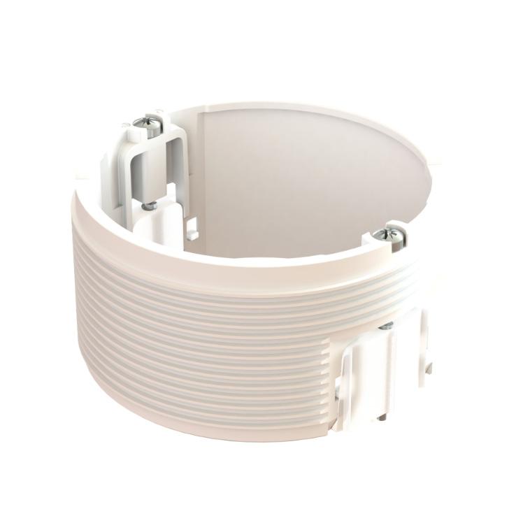 This base wall box is designed for double plasterboard installations (24mm) and comes without inlet attachments. It features an adjustable inner ring, allowing you to customise the height for a perfect fit. The included lid protects wiring during construction and can be recycled post-installation. Equipped with 2x Ø16mm and 2x Ø20mm knockout inlets at the back.