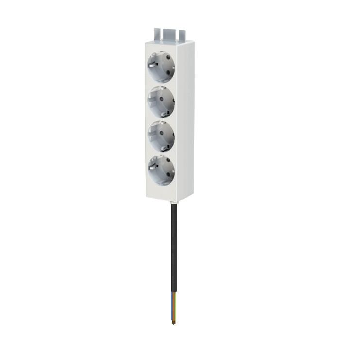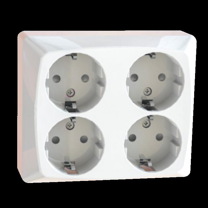 4-way combination frame fitting standard and low profile double Schuko sockets. Suitable for recessed installation or with matching wall casings. No extra mounting frame needed - Series P products include it by default.