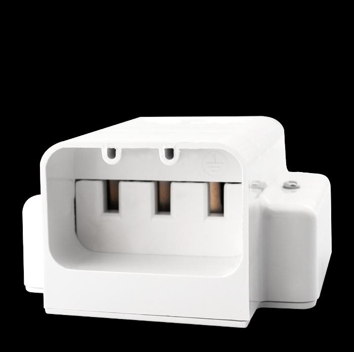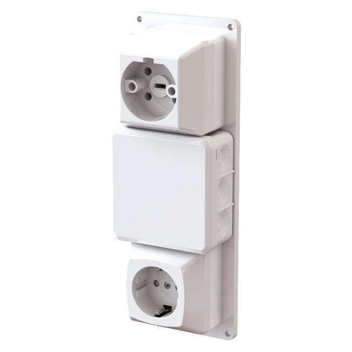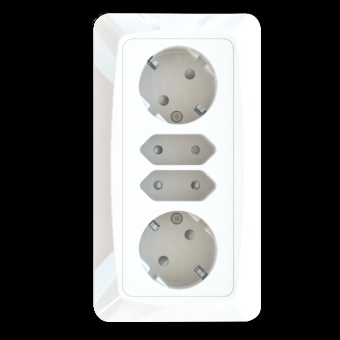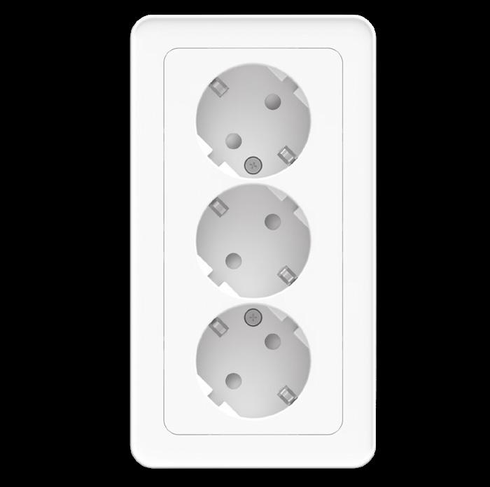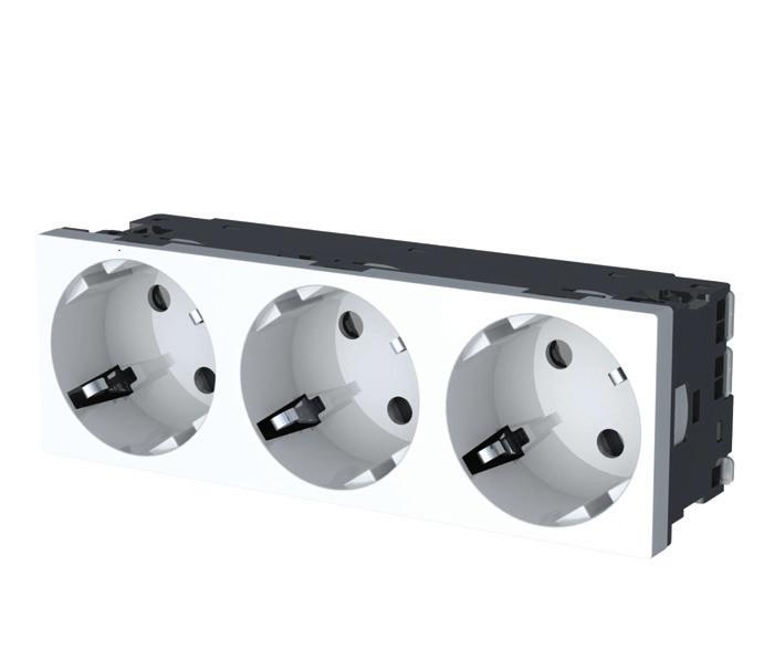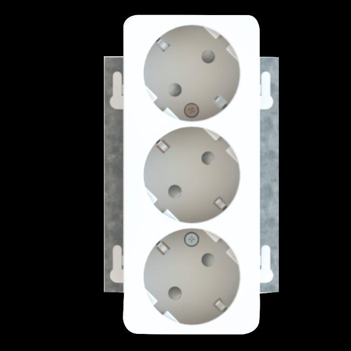 Socket frame designed to accommodate a 3-way Schuko socket and two standard socket or switch units. Ensures a secure, precise fit and a neat finish, combining functionality and durability for versatile electrical installations.