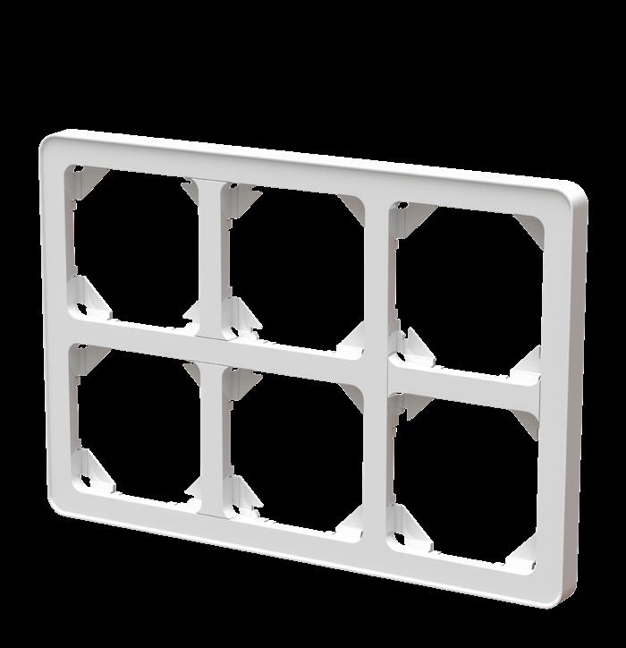 5-way combination frame for Series P products, available in white or black. Suitable for recessed installation or with matching wall casings. No extra mounting frame needed - Series P products include it by default.