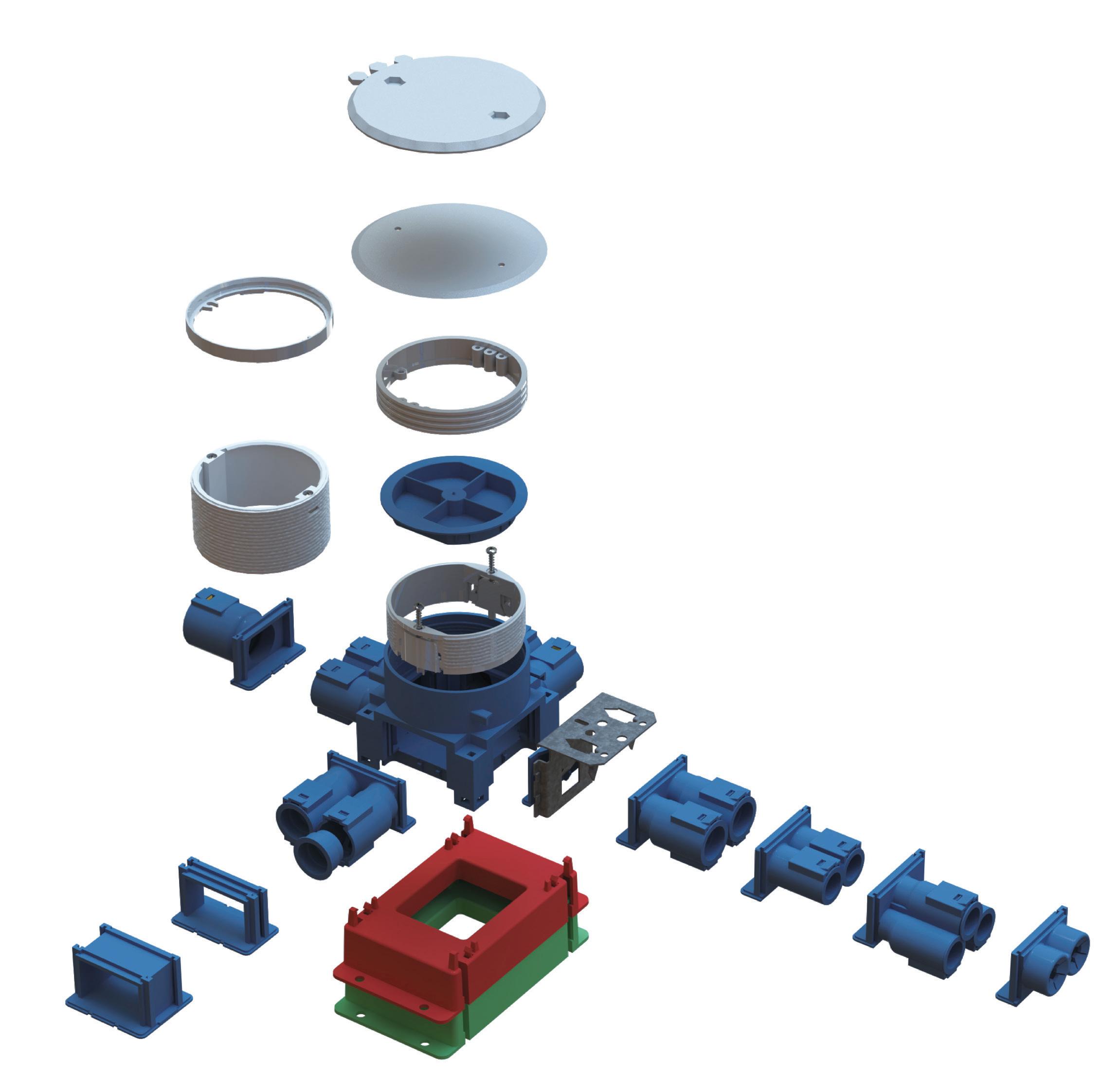 With various heights and dimensions, our boxes can be customised using a range of inlet attachments, joining frames, and different fixing plates. Boxes can also be joined together, ensuring seamless integration and adaptability.