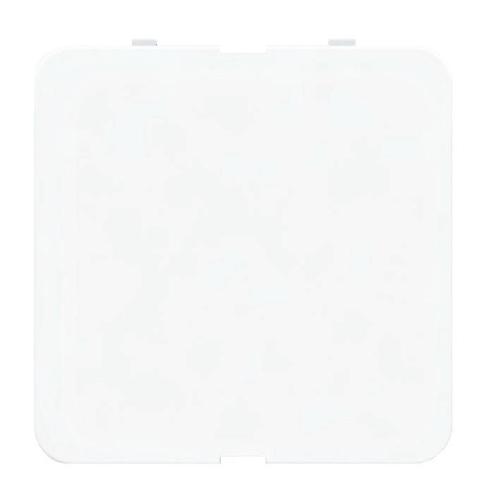 Blind plate without frame, designed to cover unused openings in combination plates when multiple wall boxes are installed but not all are in use. Provides a clean, finished look while protecting the unused space.