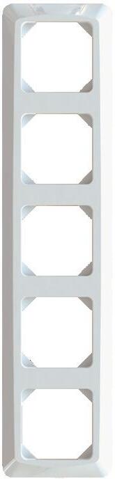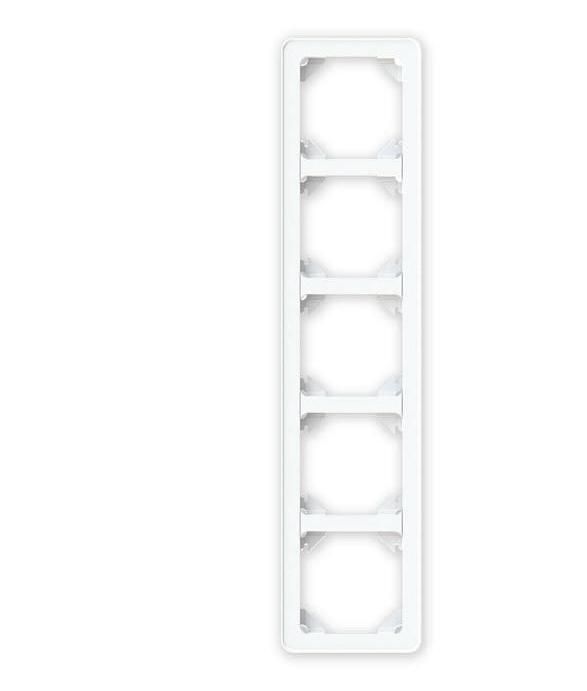 5-way combination frame fitting three standard sized sockets/ switches and two RS16-sized. Suitable for recessed installation or with matching wall casings.
