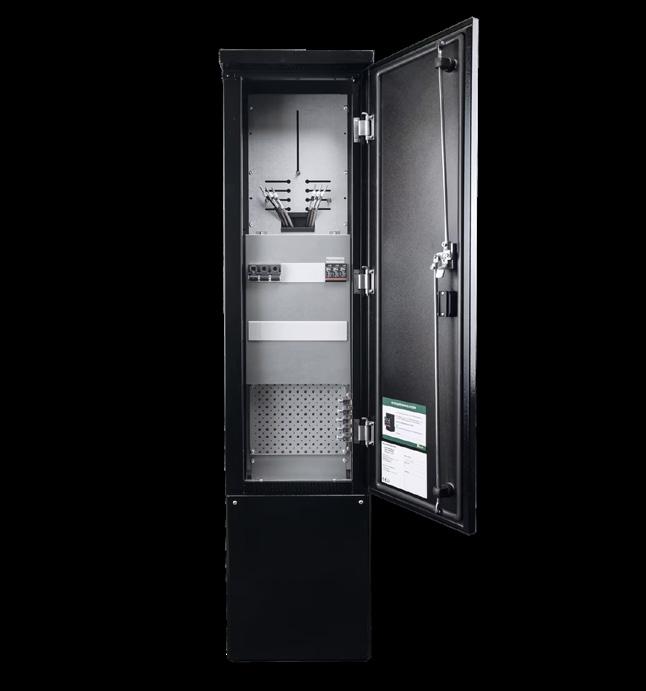 The cabinet is pre-connected with whips for incoming cables and features 50 mm² connection terminals for outgoing cables. When using the “Integrated Distribution” nameplate, additional consumer circuits can be mounted on the free DIN rail. Supplied pre-connected with one 3P Neozed protection and one 275 V surge protection. Neozed cartridges should be ordered separate separately.