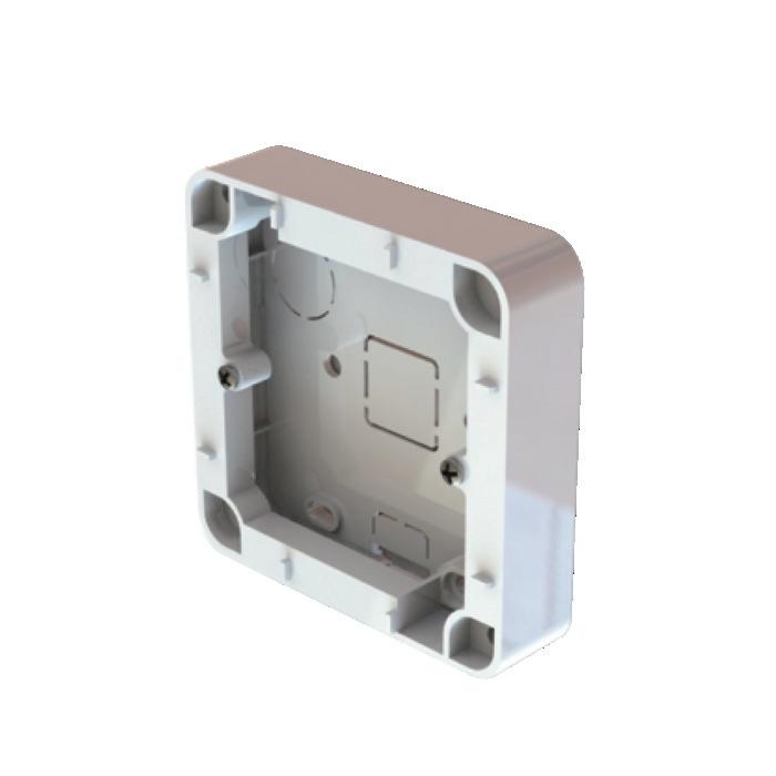 Single wall box for single plasterboard with Ø16/Ø20mm inlets and fixing plate