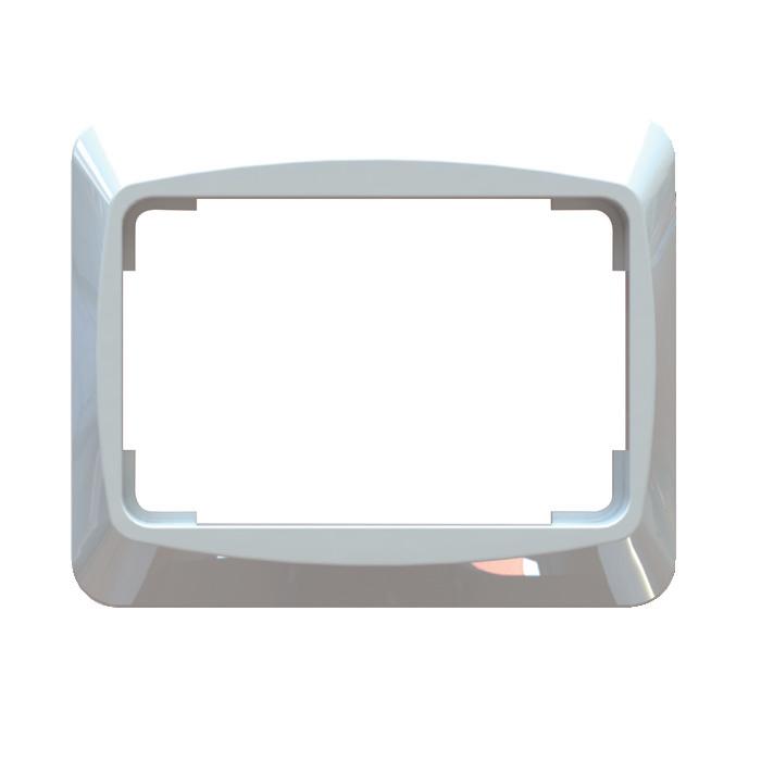 3-way combination frame fitting one standard sized socket/ switch and two RS16-sized. Designed for recessed installation or use with wall casings of matching size.