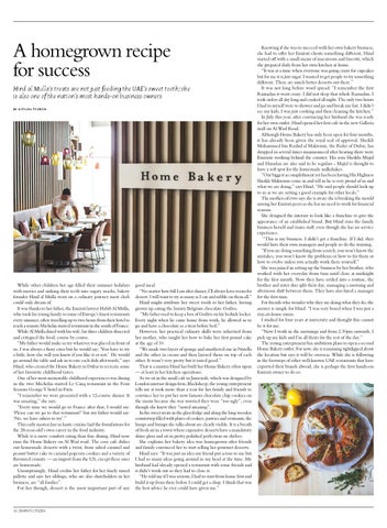 A homegrown recipe for success Hind al Mulla’s treats are not just feeding the UAE’s sweet tooth; she is also one of the nation’s most hands-on business owners BY NATASHA TOURISH