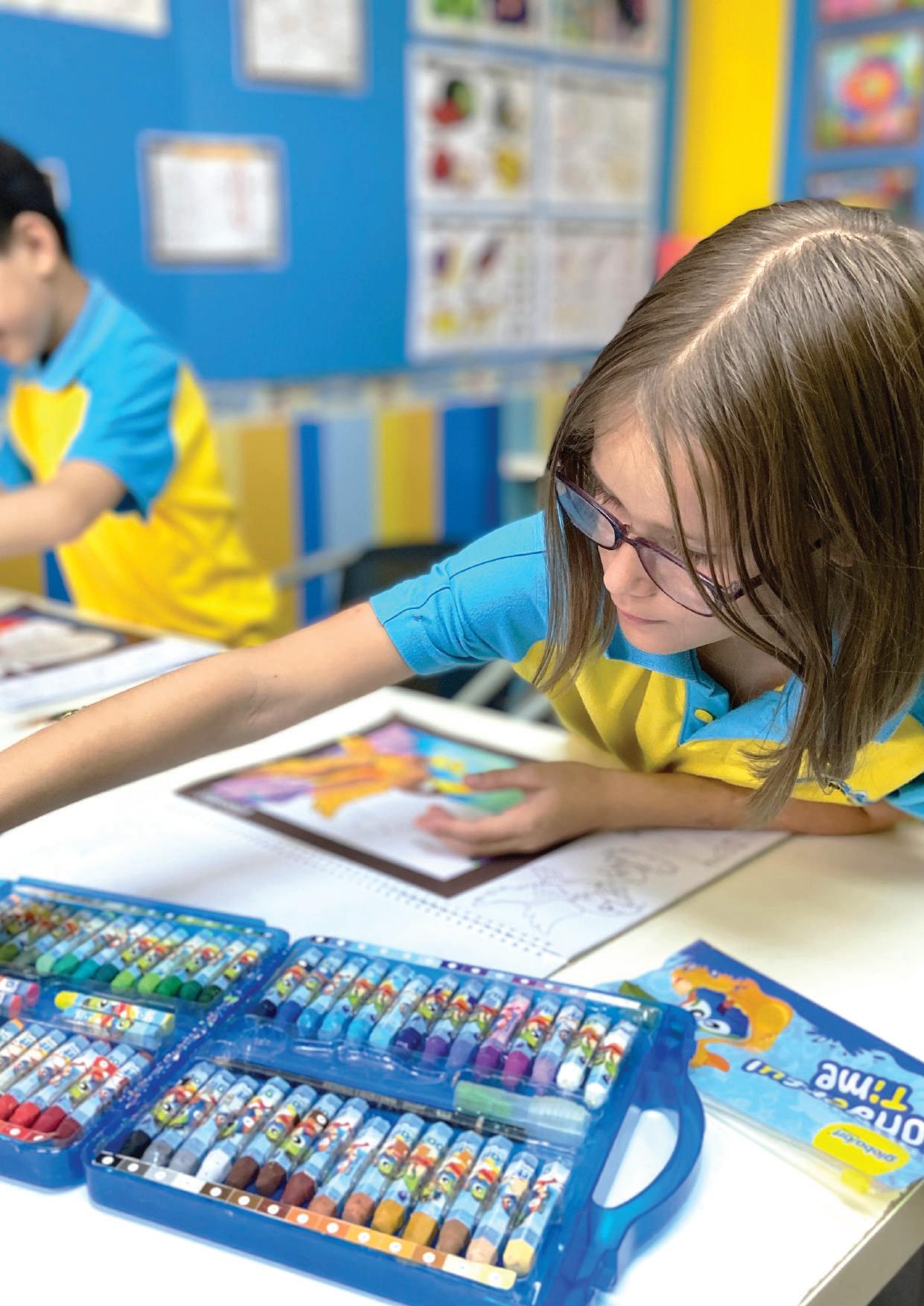 In art classes, children are encouraged to be creative by seeing things from a di erent perspective and to think outside the box. This helps them develop imagination and prob lem-solving skills.