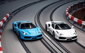 Twin-trackracing coaster simulating a thrilling Ferrari F430 GT race, reaching speeds up to 95 km/h for competitive fun.