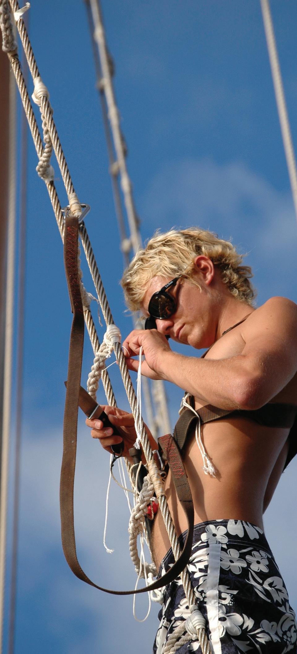 Your first week or so on-board, you learn the basics of sailing and of operating the vessel. You have your first lectures in your academic courses. You begin to understand that everyone shares responsibilities for everything from planning itineraries and provisioning to cooking and cleaning. There are no passengers on this voyage; on-board everyone is a part of the crew and must be a sail, not an anchor if the voyage is to succeed. As the first close working relationships develop, your support for one another, your confidence in yourself, and your enthusiasm grows.