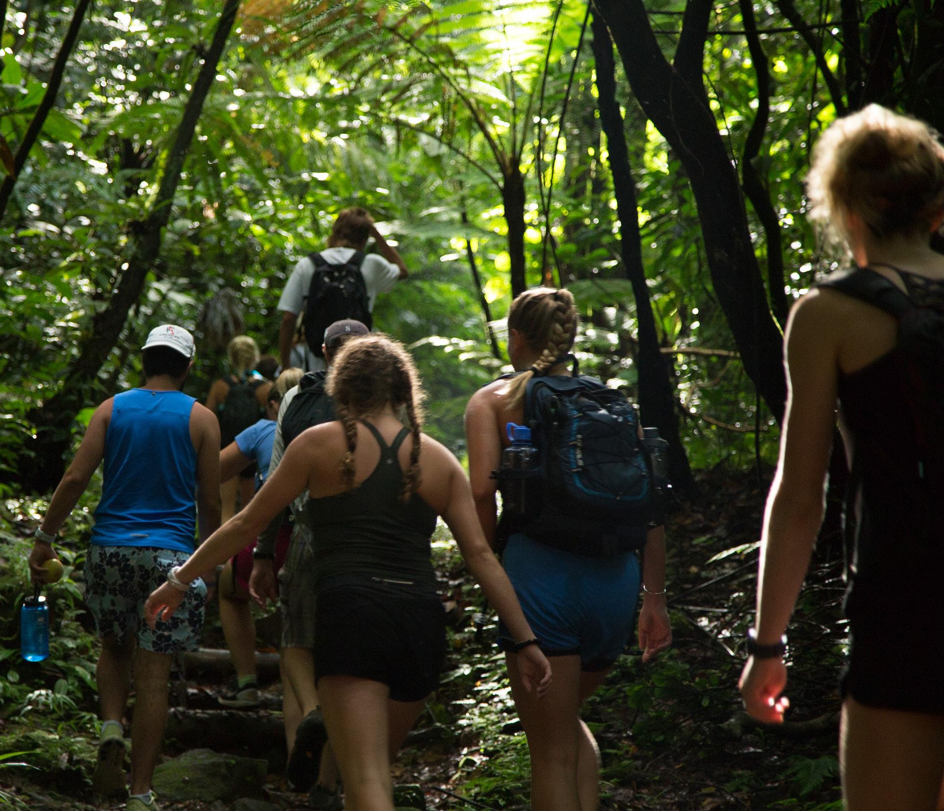 "The hike began peacefully enough; a walk through paths lined with cinnamon and banana trees. Before long, the rainforest beckoned. We entered, surrounded by huge, green leaves and exotic birds. The beauty made it easy to forget about what awaited us, but that feeling was short lived. As the forest began to thin, the pounding of whitewater could be heard through the trees. We drew nearer, and the thundering grew louder. Before long, we were face to face with the reason we came: a massive, churning, 40-ft waterfall. David, our guide, led off, jumping as calmly as if he were stepping out his front door. Paul was next, followed by Chris, and then myself. Hands shaking, I took the plunge. It was the best decision I’d ever made."