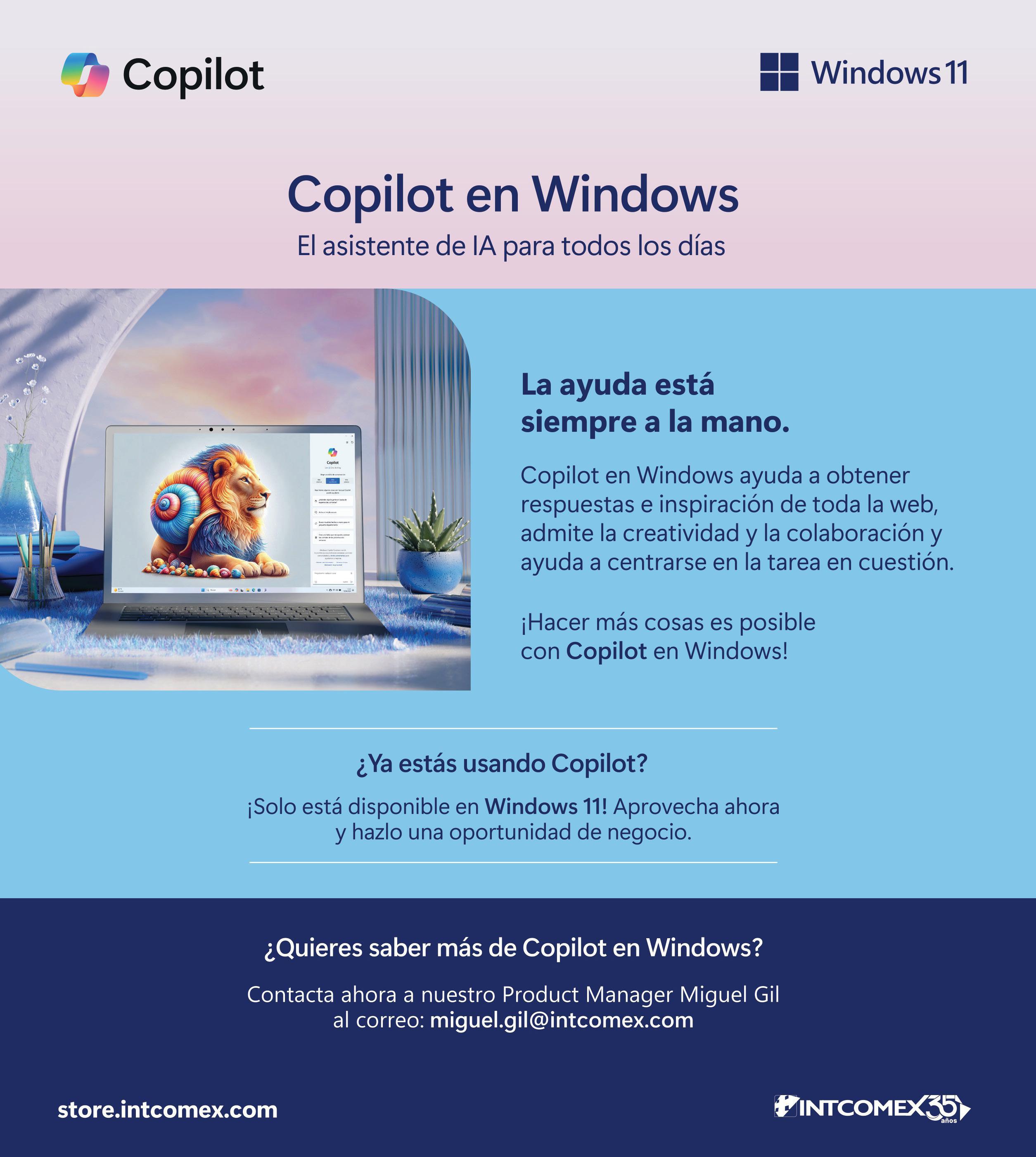 La actualización a Microsoft Windows 11 y la Inteligencia Artificial de Copilot representan oportunidades de negocio para los distribuidores e Intcomex las dio a conocer para obtener de éstas el mayor provecho.