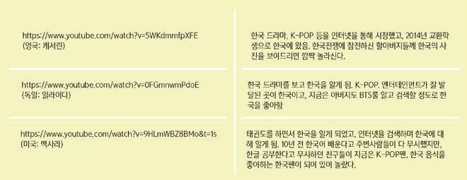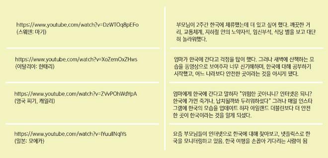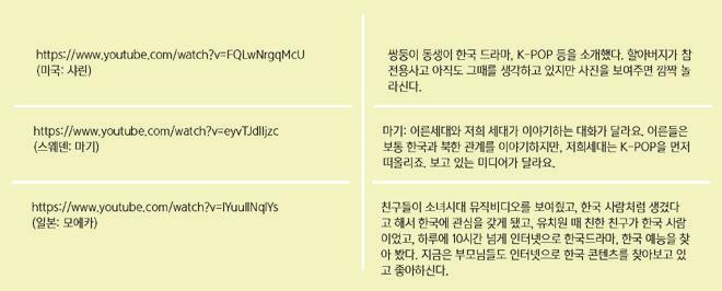 음악, 영화, 드라마 및 한식 등 어디를 가나 쉽게 한국 을 느낄 수 있다.