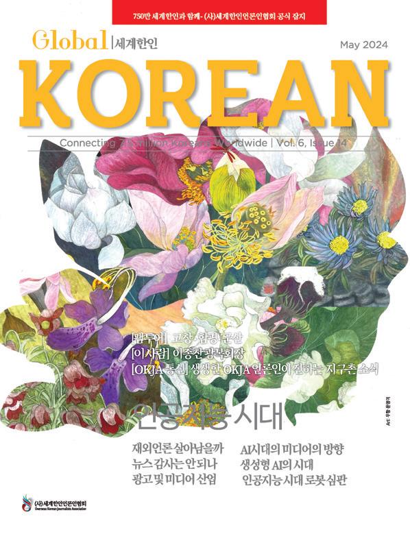 세계한인 2024년봄호 커버 사진: 대한민국도 이민자들이 살고 있는 세계 각국도 단일민족의 모습을 갖고 있는 국가는 없다. 지난 호 커버 사진처럼 나는 무 궁화라고 믿고 있지만 한국에서 보는 나는 하와이 무궁화 처럼 보일 수 있는 것처럼. 언어와 풍습이 다른 곳에서 살게 되면 나 도 모르는 사이에 다른 모습이 되곤 한다. 만일 (외국에서) 우리 의 언어를 계속 이어갈 수 있다면 그 차이의 크기를 줄일 수 있