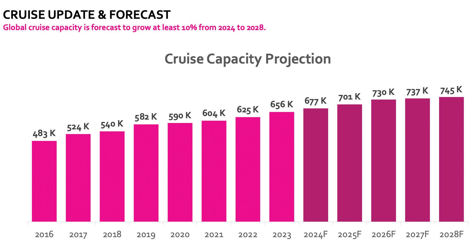 Featuring in our Cruise Report (on page 28) is data from Cruise Lines International Association and m1nd-set, which reveals global cruise capacity will grow at least 10% from 2024 to 2028, reaching 745,000 cruisers. Experts from across the travel retail channel in cruise weigh in on the experience-driven travel option that offers unparalleled dwell time and often underutilizes its number one tool: sales staff.