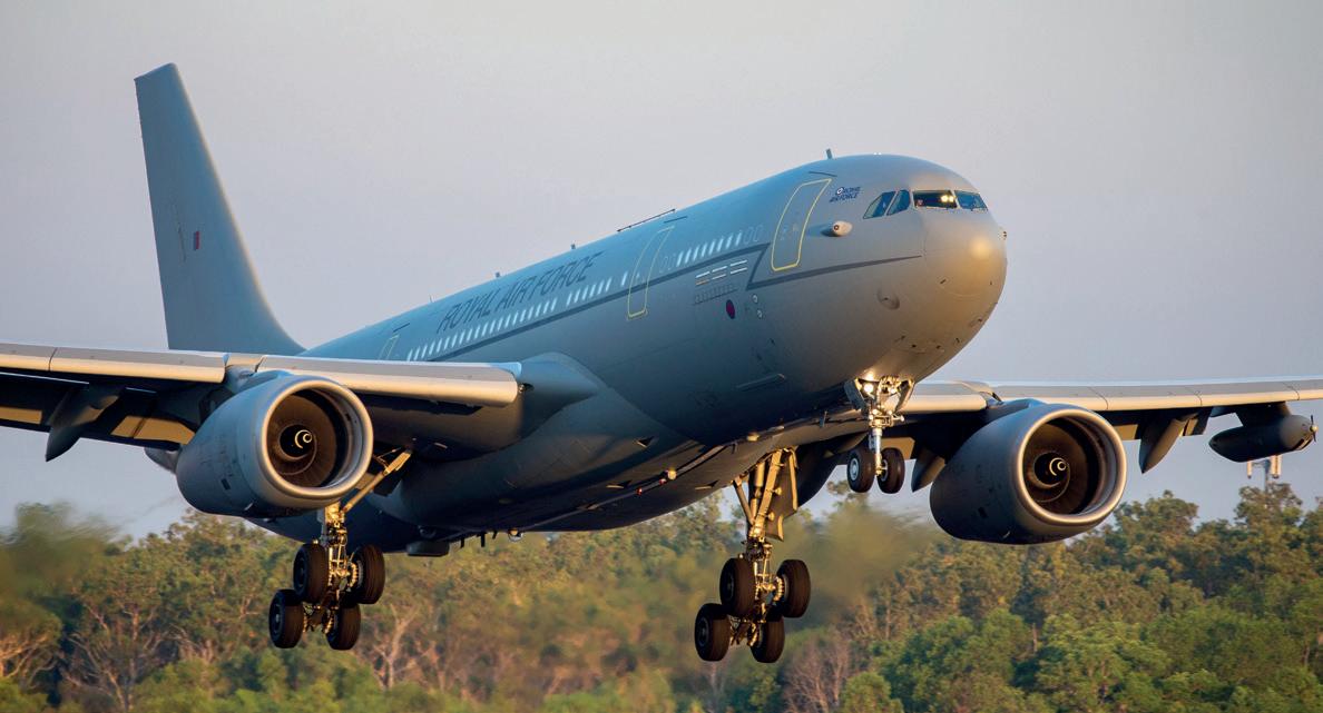 In November 2022, an RAF Voyager ew over Oxfordshire, powered by 100% sustainable aviation fuel –a world- rst for a military aircraft of its size (PHOTO: MOD/ CROWN COPYRIGHT)