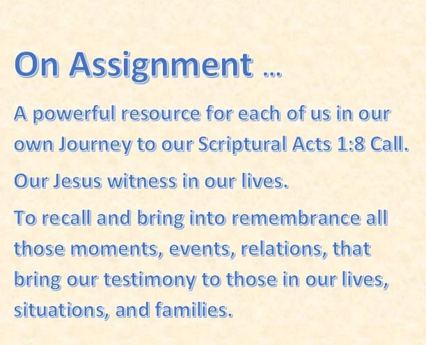 He has placed us all in different places with different gifting and calling with our assignment to be “His witness”.