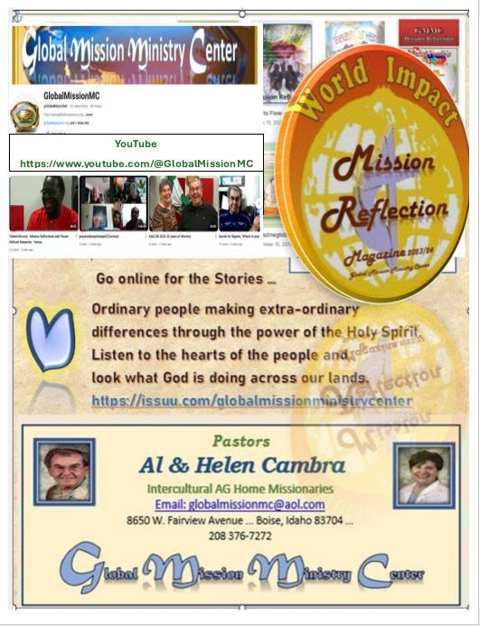 A very big thanks to you my parents and the Global Mission Ministry Center.