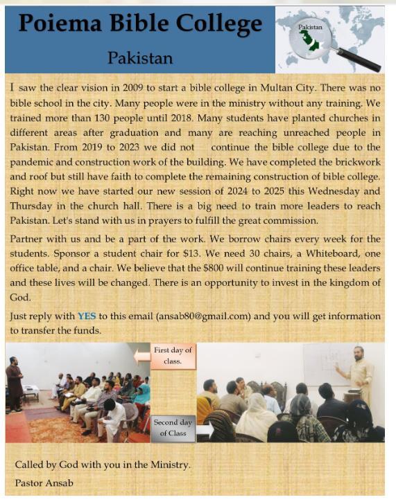 Dear Pastor Helen, I wrote a newsletter and made an image that you can send to others. I still remember when I started the bible school in 2010, and you became a partner with prayers and support. Have a look and pray that Global Mission can be a partner to train more leaders to reach the people of Pakistan.