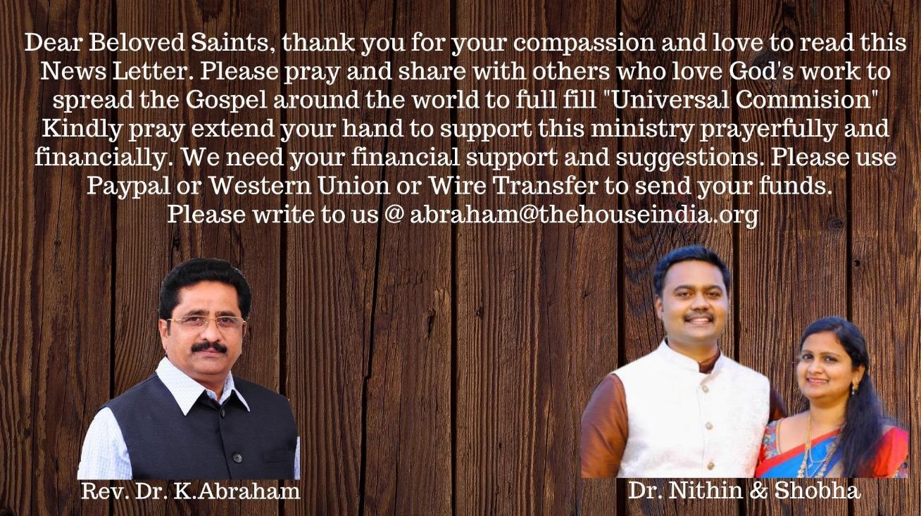 There are many Reports to share. How ever, I will share in next News Letter. Prayer Requests for the updated Needs:
