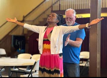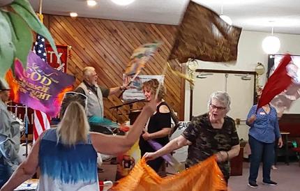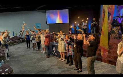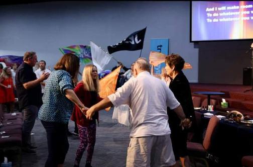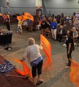In preparation for the CHURCH ON FIRE conference, Kinisi 424 from Peoria, came to teach us about the use of flags, banners, dance, sound, and movement in worship “Kinisi” means movement and their guiding scripture is John 4:24, “God is spirit, and his worshipers must worship in spirit and truth.”