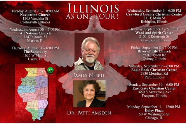The Lord has also given James the task of calling all 102 counties of Illinois to send prayer warriors to their county seats to pray together at noon on September 11th, 2023.