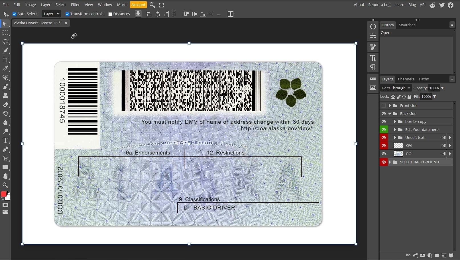Are you looking for a high-quality Alaska Driver’s License Template (Front & Back) V2? You’ve come to the right place! At GlobalPSDTemplate.com, we offer a fully editable PSD template that is designed with precision and attention to detail. This Alaska DL PSD template is ideal for various professional and novelty purposes, ensuring a seamless and realistic design that meets your needs.