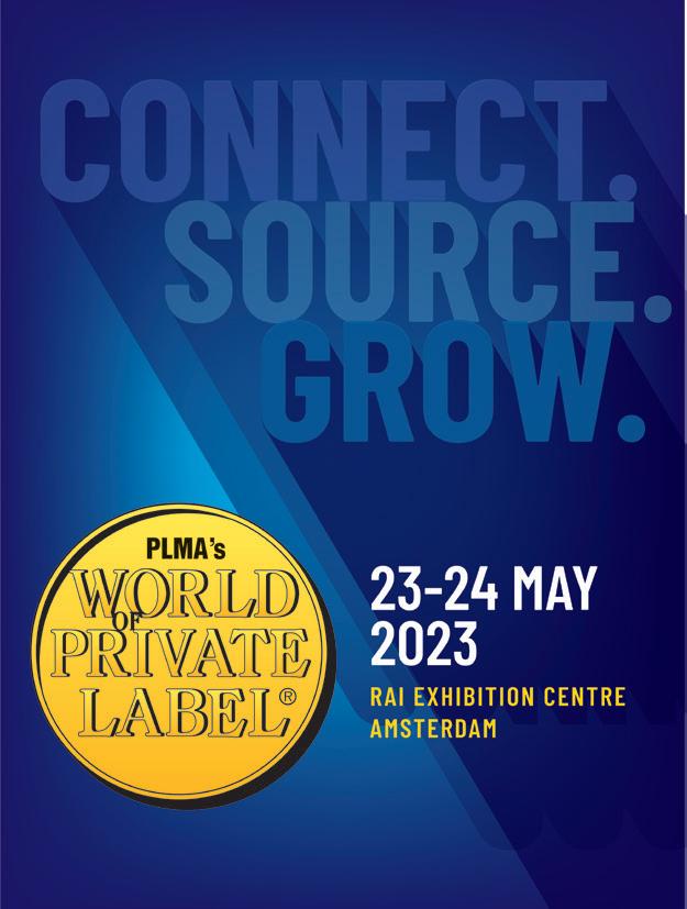 The private label industry will again meet at PLMA’s “World of Private Label” International Trade Show at the RAI Exhibition Centre, Amsterdam on 23-24 May 2023. In all, 25,000 professionals from 120 countries will assemble. Exhibitors will be joined by retailers, wholesalers, importers, exporters and others, to examine products, strengthen partnerships, identify innovation and plan for profitable growth. Go to www.plma.nl for more information Presented by the Private Label Manufacturers Association International Council 23-24 MAY 2O23 RAI EXHIBITION CENTRE • AMSTERDAM