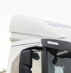 The new design of the door, which extends all the way down to the second step, creates a smooth surface on the sides of the cab, reducing turbulence at cruising speed.