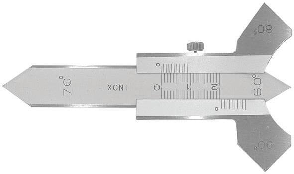 Til måling af 60° - 70° - 80° - 90° svejsefuger, matforkromet udførsel. Batteri: 1×LR44 medfølger (art. 35161250).