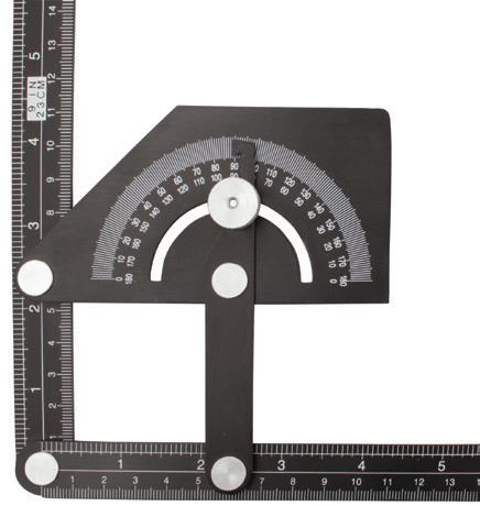 Praktisk vinkelmåler til både indvendige og udvendige målinger af vinkler og grader.