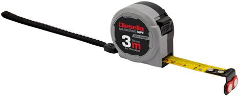 Let og slidstærkt professionelt båndmål. Med mat gult båndmål, sort mm-skala, røde tal for hver 10 cm og magnet. Huset er gummibelagt for ektra beskyttelse. Udløserknappen sidder i toppen af huset for hurtig og intuitiv tilgængelighed med tommelfinger. Pris pr. stk. ved køb af 12 stk.