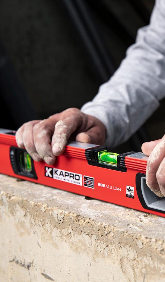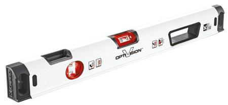 Et ekstremt holdbart vaterpas med sin asymmetriske profil, en libellebro og stødsikre endekapsler. Vaterpasset er med den revolutionerende OPTIVISION™ RED teknologi. Teknologien giver et højt kontrastforhold mellem boblen og væsken i libellen for hutigere og mere præcis flæsning i lyse og mørke omgivelser.