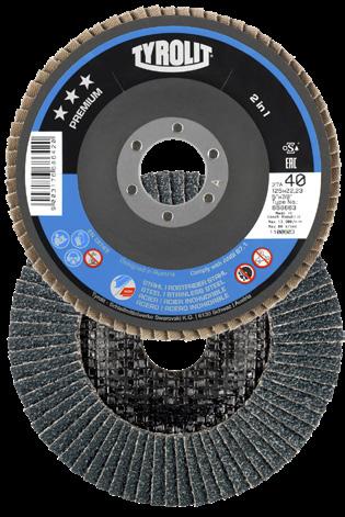 Premium ø125 mm lamelskive 2-i-1 til stål og rustfrit stål. Skiven har en glasfiberbærekrop i vinklet udførelse til en optimal slibevinkel på 15-20°. Bearbejdning af svejsesøm og slibning af kanter og overflader kan ske uden problemer, især ved anvendelse af kraftfulde vinkelslibere.