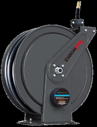 Automatisk slangeopruller med 15 mtr. hybrid polymerslange til luft. Med dobbelt styrearm, dobbelt monteringsarm og ekstra kraftigt vægbeslag. Sikkerhedsbremse sikrer kontrolleret tilbageløb af slangen, hvilket beskytter både bruger og omgivelser. 20 bar. 3/8”