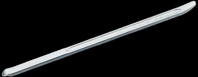 Dækjern til aftagning af dæk –velegnet til motorcykler, personbiler og lette varevogne. Med fladt mønster og krogformede ender. Højtlegeret Cr-V-stål, forniklet og forkromet. Hårdhed 40-48 HrC.