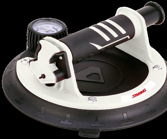 Stærk sugekop ø205 mm med manometer, der viser vakuumtryk under betjening og medvirker til ekstra præcision og sikkerhed under løft. Velegnet til håndtering af fliser, klinker o.l. Løfter vertikalt op til 128 kg og horisontalt op til 158 kg.